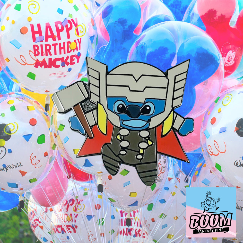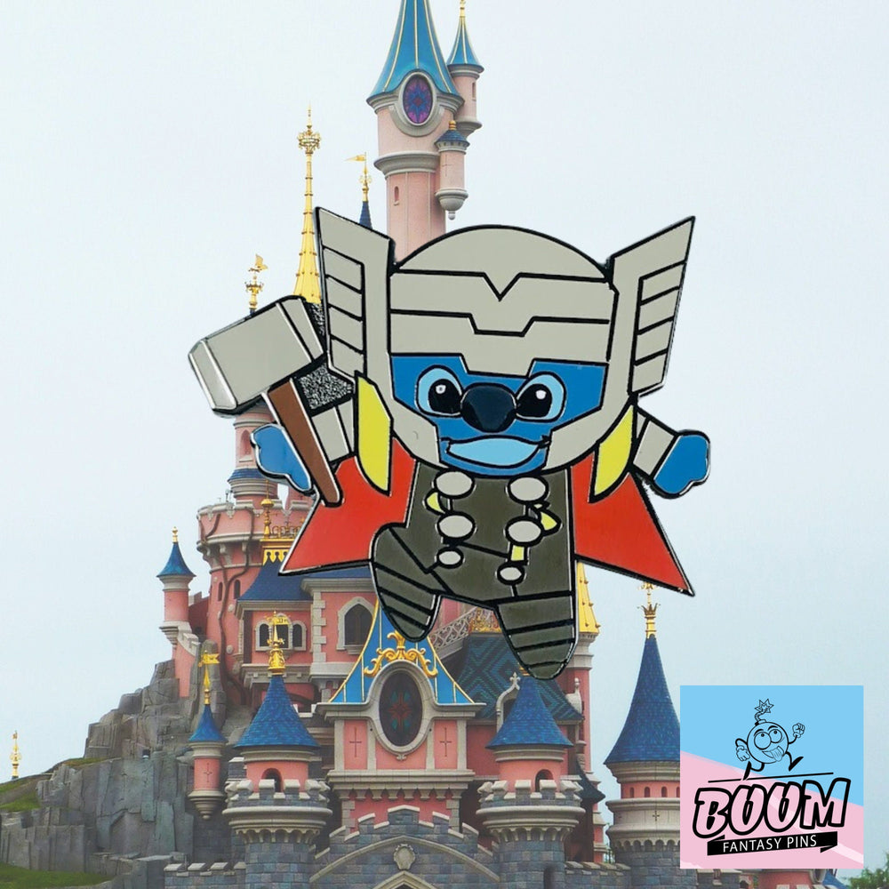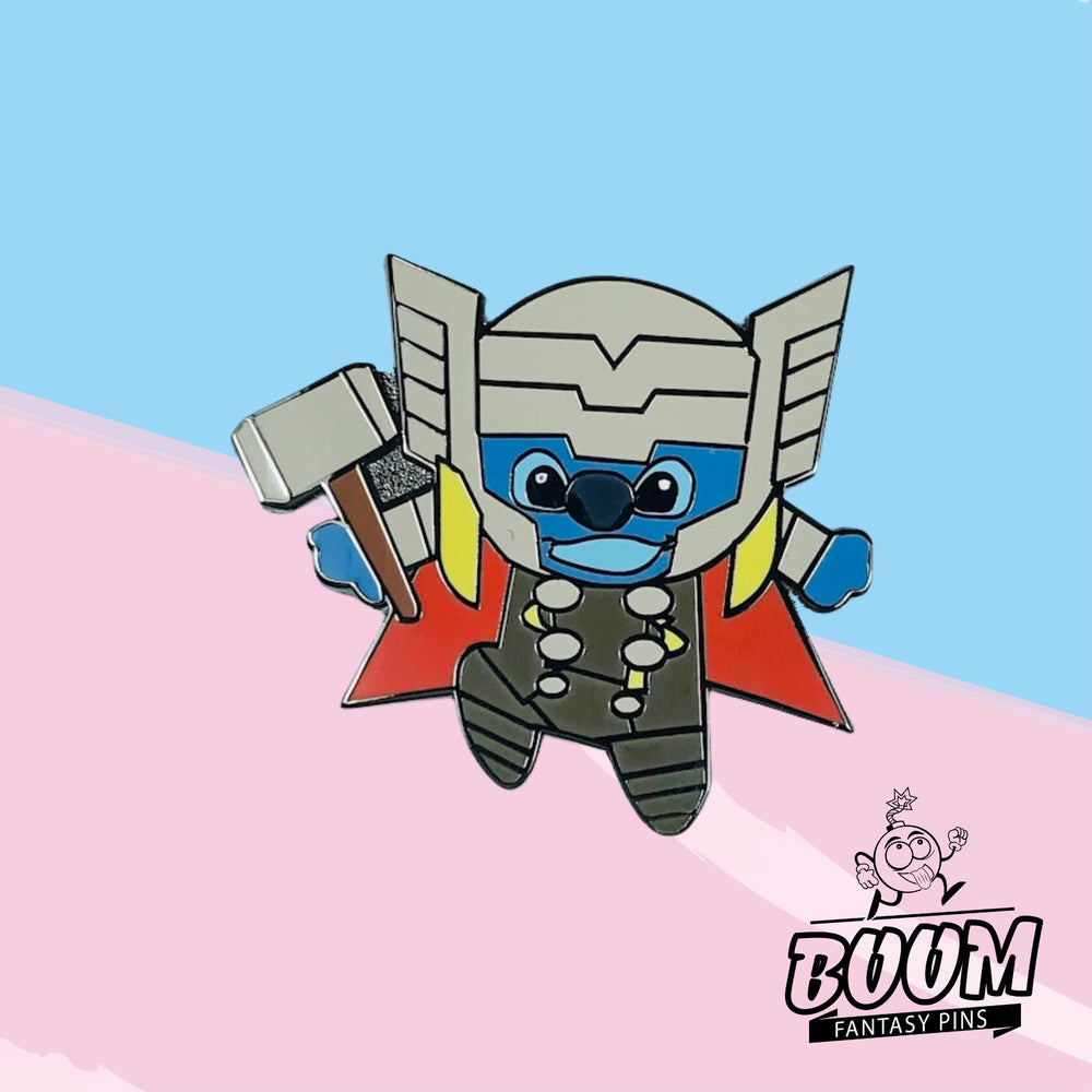 En este exclusivo coleccionable crossover, Experiment 626 adopta el aura de Thor, el legendario dios nórdico del trueno, blandiendo el mítico martillo con heroica aplomo. Los vibrantes azules de su pelaje se electrifican con detalles metálicos, capturando la energía pura de tormentas cósmicas y aventuras intergalácticas. Este pin no es solo un accesorio: es una historia para llevar, un homenaje a la resiliencia y la transformación que los fans de Marvel y Lilo & Stitch atesorarán.