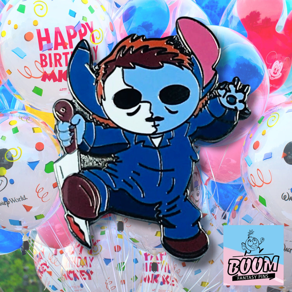 Imagina el inquietante resplandor de la luna de Halloween proyectando sombras sobre un paraíso tropical, con Stitch saliendo de las vibrantes escenas isleñas hacia un reino de suspenso y emoción. El intenso pelaje azul contrasta con la fría y escalofriante máscara de Michael Myers, creando una tensión visual que cautiva la vista y despierta la imaginación. Este pin no es solo un accesorio; es una narrativa, una historia plasmada en esmalte y color que habla de la esencia de dos mundos entrelazados.