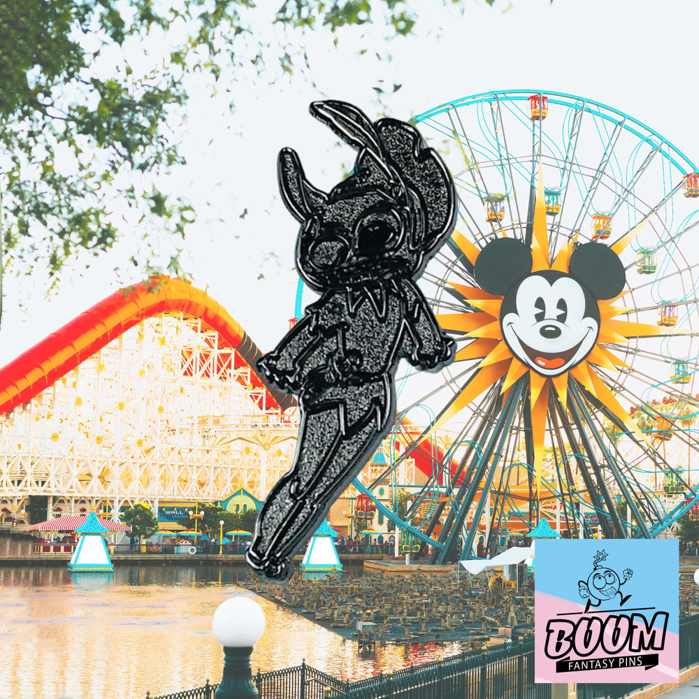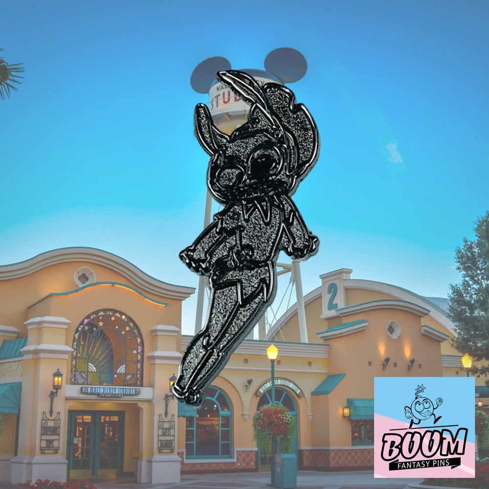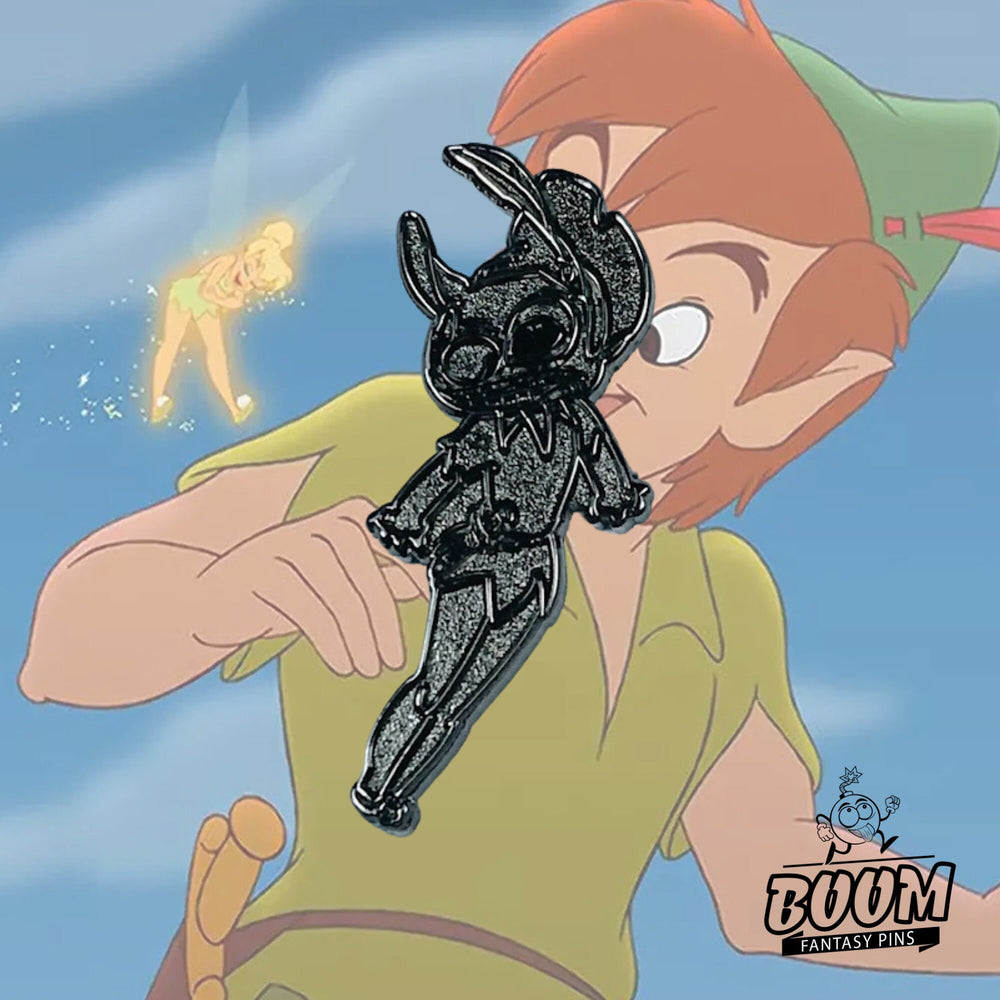 Imagina el momento en que la fantasía y la realidad se difuminan: una persecución vertiginosa por cielos estrellados y copas de árboles frondosos, con risas mezclándose con los susurros del aloha. Este pin captura esa esencia, inmortalizando una escena donde Stitch, vestido con el icónico verde de Peter Pan, se convierte en la encarnación de la aventura sin límites y la eterna promesa de la ohana. Es una celebración del corazón juguetón que se niega a ser domado y del espíritu de familia que nos une, sin importar dónde estemos.