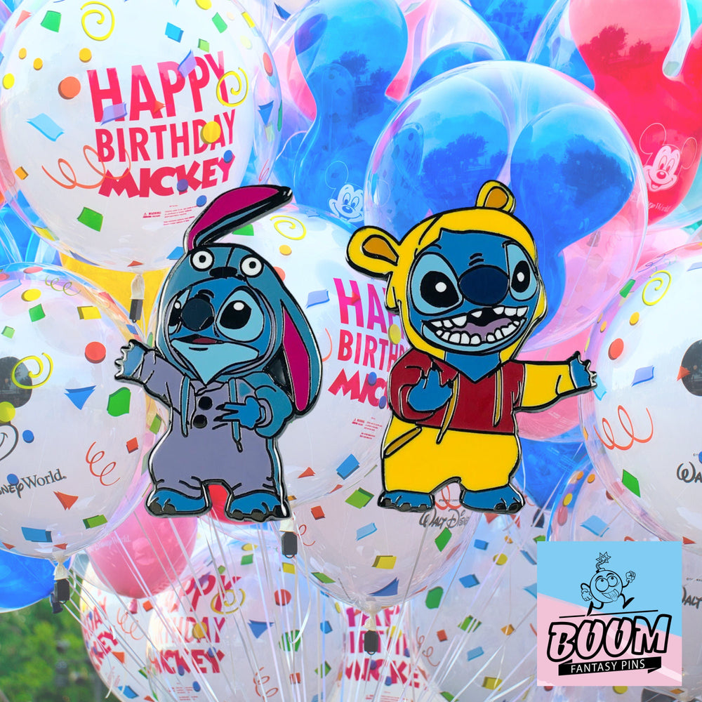 - Fusión de Disfraces Caprichosa : Este pin presenta de forma única a Stitch con divertidos disfraces inspirados en los personajes clásicos Winnie Pooh e Igor, combinando travesuras con fantasía. El diseño imaginativo invita a los fans a una fusión de tradiciones narrativas, celebrando la alegría del fandom y los cuentos atemporales.