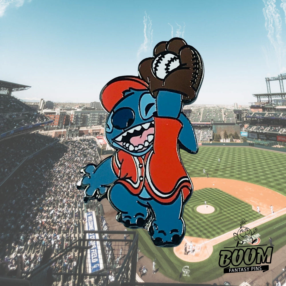 - Pose dinámica : en pleno swing de béisbol, este pin irradia una energía imparable y la determinación descarada que define el arco del personaje de Stitch.