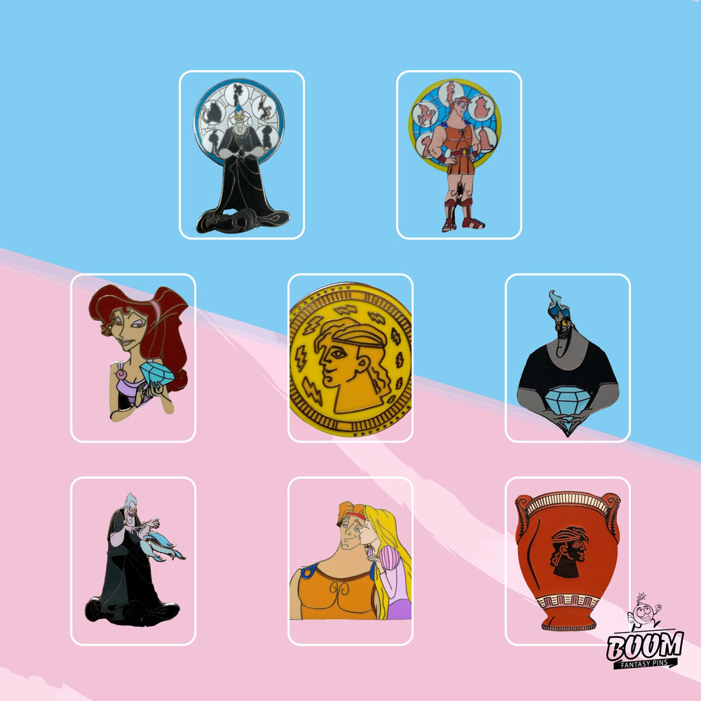 Este pin coleccionable de Boom Fantasy captura toda esa magia y mucho más. Con un arte exquisito, inmortaliza a Hércules en su pose heroica, flanqueado por la intensidad ardiente de Hades y la gracia feroz de Megara. Los vibrantes tonos y los intrincados detalles evocan los paisajes míticos de la antigua Grecia, transportándote a un mundo donde dioses y mortales se unen de forma espectacular. Este pin no es solo un homenaje, sino un talismán para llevar puesto, un emblema radiante de grandeza mitológica y heroísmo personal.