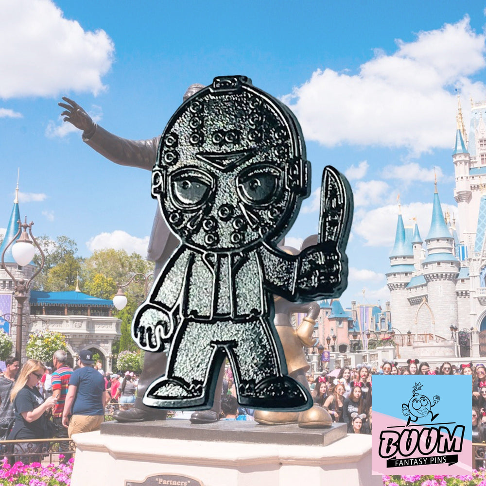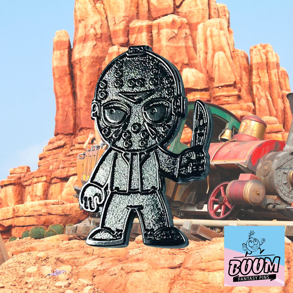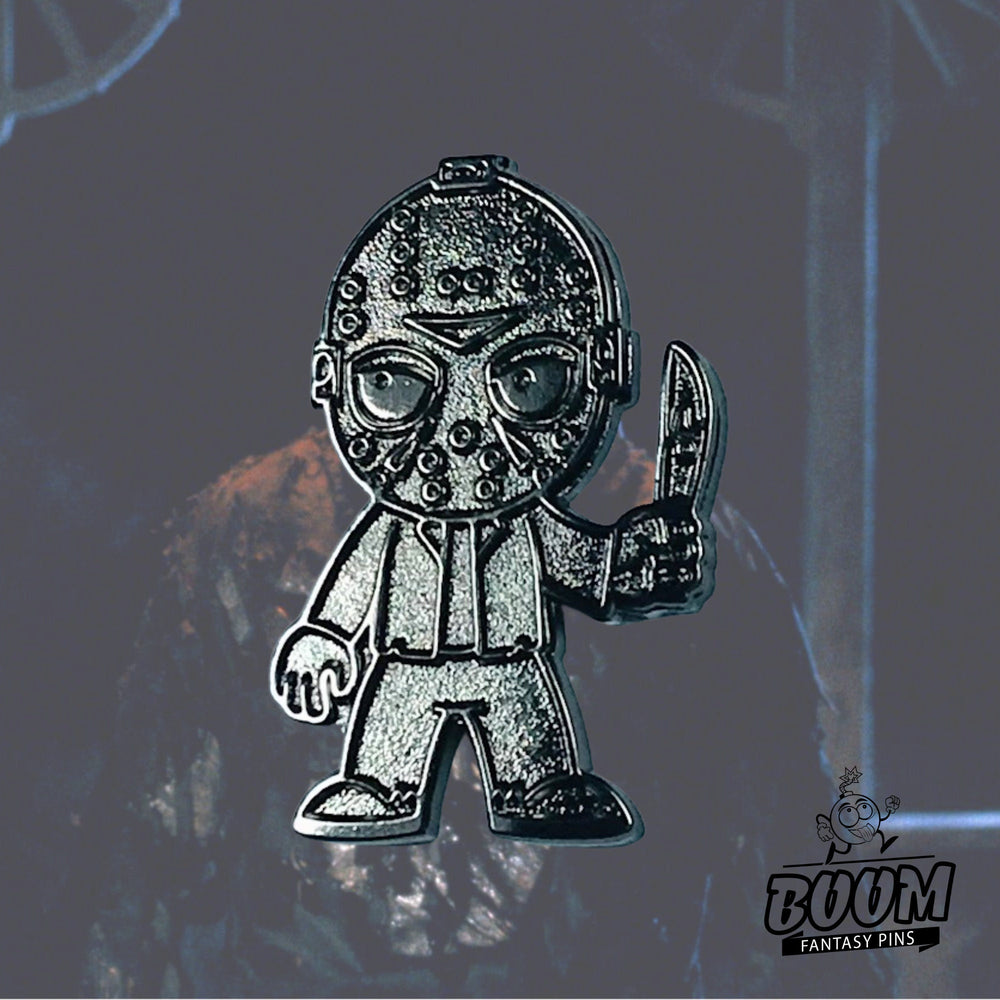 - Legado y tradición : un símbolo del poder perdurable del terror, este pin representa la cadena ininterrumpida de narraciones que ha convertido a Jason Voorhees en un elemento permanente en el panteón del terror.