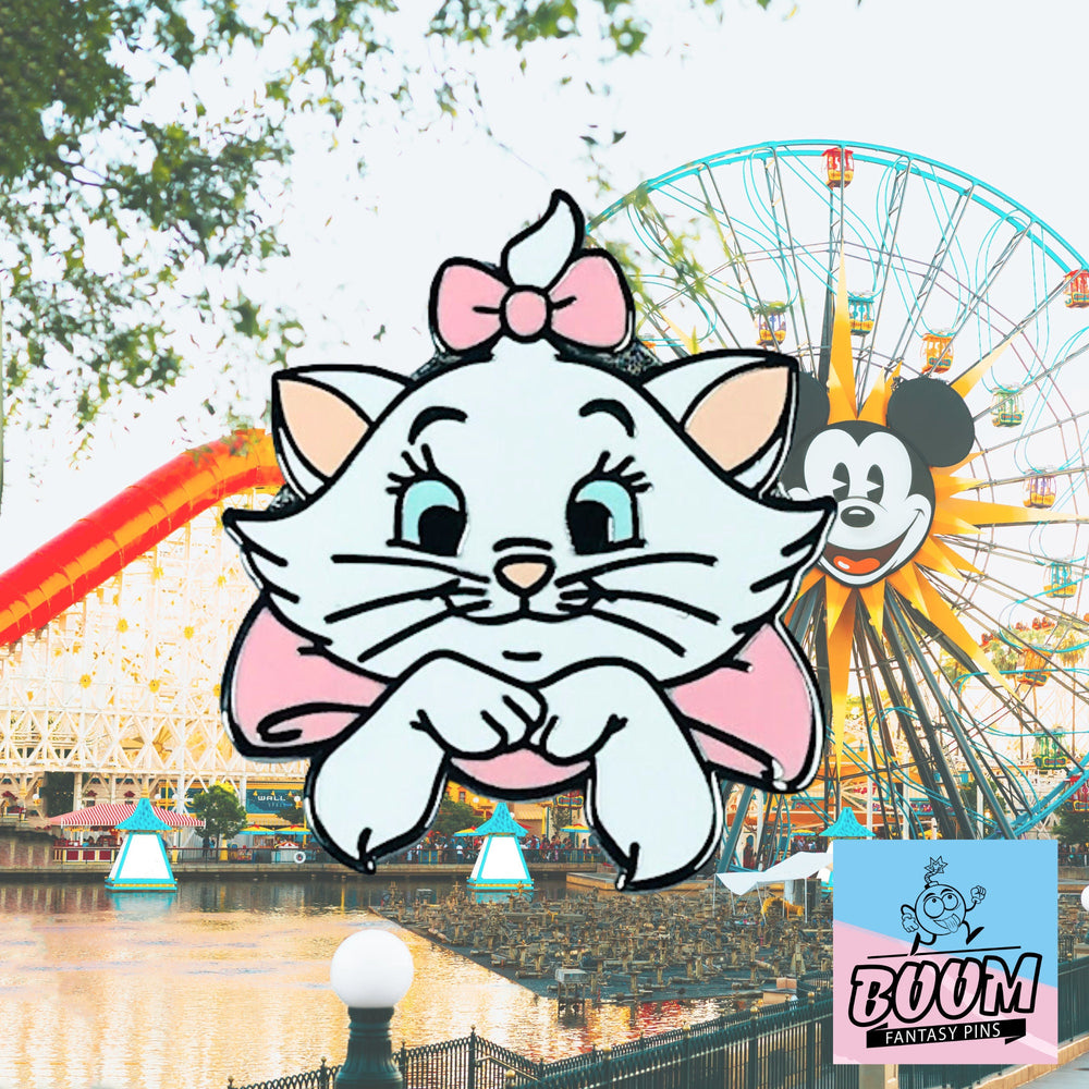 El Pin – Marie de Los Aristogatos – Disney Fantasy | Elegante accesorio coleccionable de gata parisina para entusiastas de la animación y amantes de los Disney vintage es un homenaje magistral a esta querida felina. Elaborado con el cuidado y la precisión que caracterizan a Boom Fantasy, este pin da vida al delicado equilibrio de inocencia y sofisticación que define el carácter de Marie. Captura su serenidad con minuciosos detalles: la suave paleta de colores pastel, los icónicos lazos y los expresivos ojos que brillan con curiosidad juvenil.