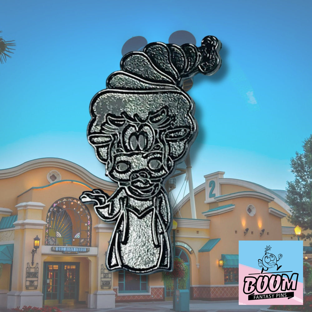 Encanto caprichoso: adornado con su lazo característico y ojos brillantes, este pin captura la inocencia juguetona y el espíritu vintage de Halloween que los fanáticos conocen y aman, irradiando calidez con cada mirada.