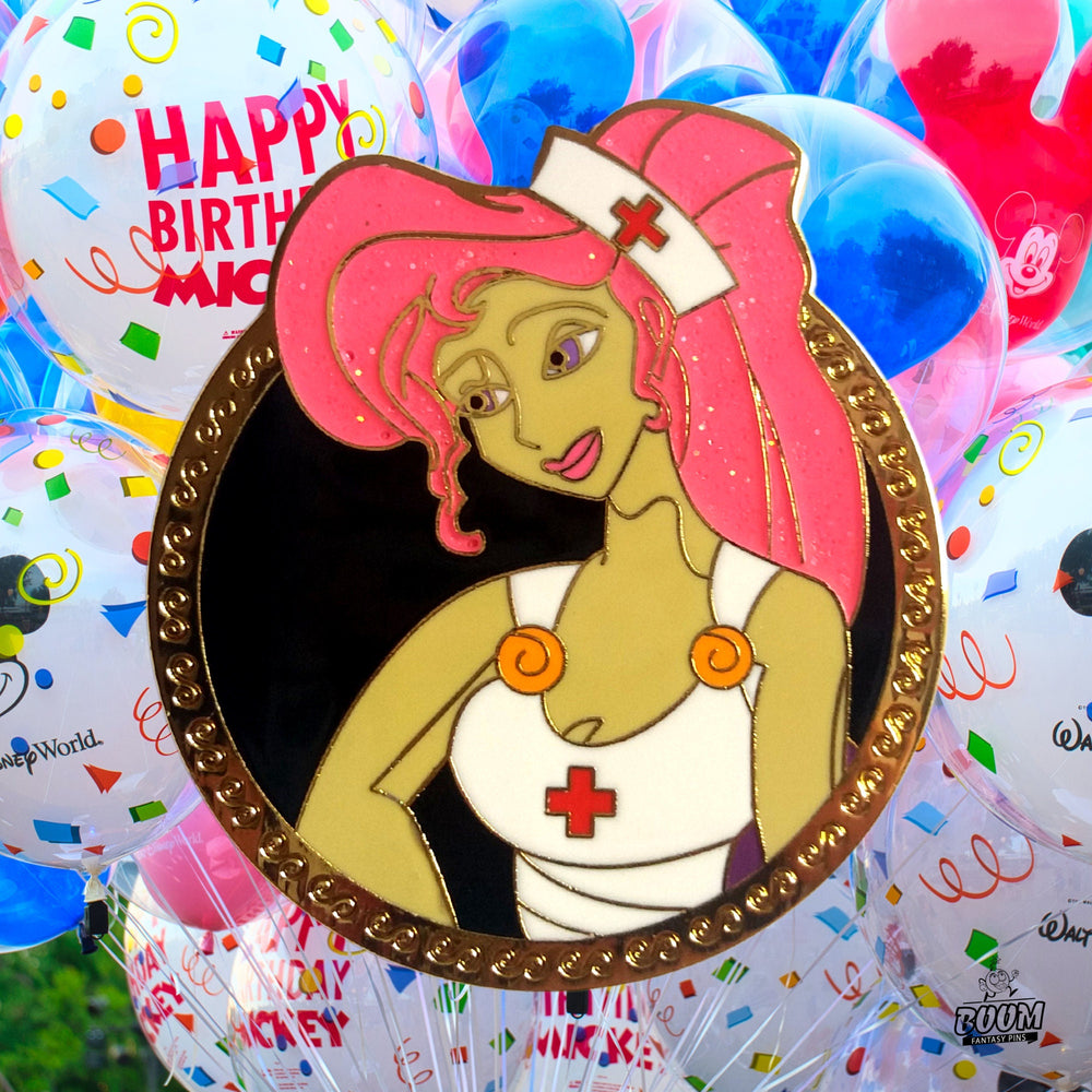 Descubre el proceso creativo detrás del pin: la inspiración en las escenas icónicas de Megara, su distintiva paleta de colores y la reinvención simbólica del atuendo de enfermera. Celebra la artesanía que transforma la mitología en magia para vestir.