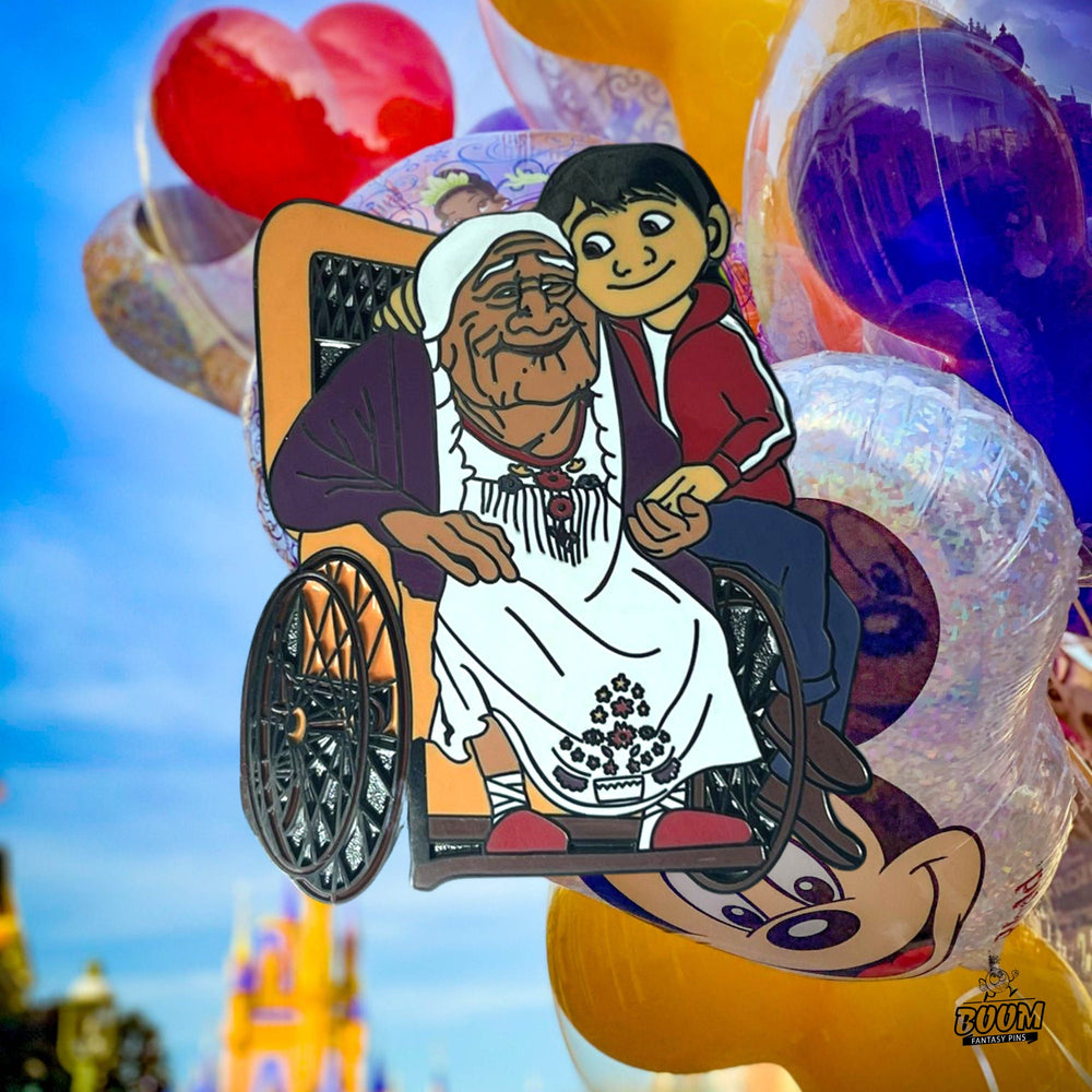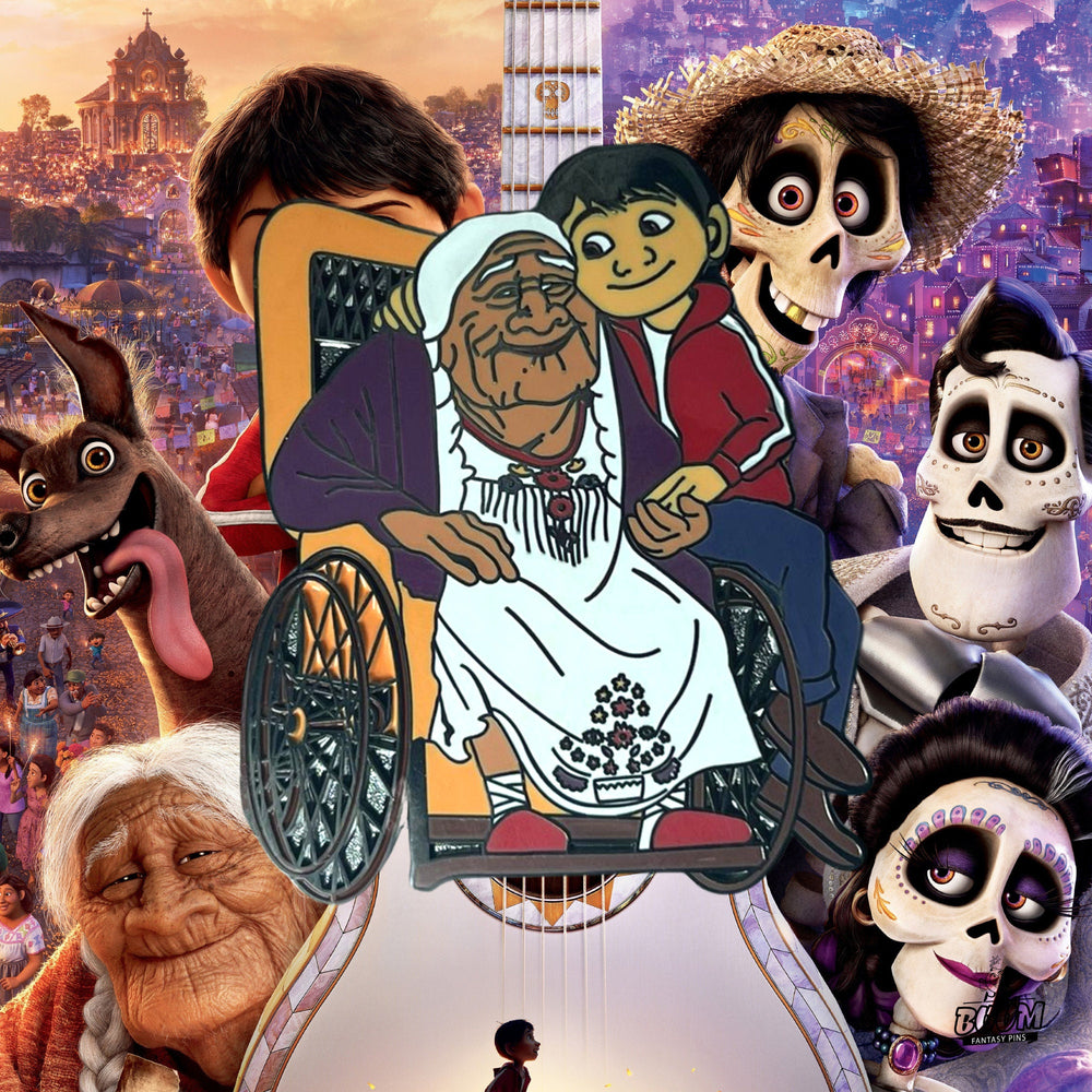 💌 Lleva este Pin – Miguel Rivera y Mamá Coco de Coco – Disney Fantasy | Recuerdo de la Celebración del Día de Muertos. Tradición Familiar Mexicana. Coleccionable como un emblema brillante de la resistencia del amor y el orgullo cultural. Que te recuerde que las voces de nuestros antepasados cantan a través de las melodías que apreciamos y que la memoria es el puente que mantiene sus espíritus vibrantes y cerca.