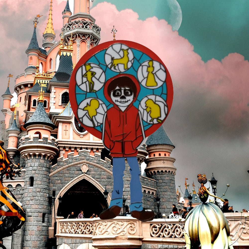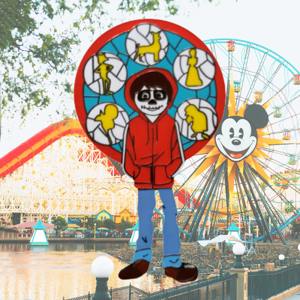 Cada pincelada está impregnada de los cálidos tonos de la Tierra de los Muertos —naranjas brillantes, rojos vibrantes y morados intensos—, que dan vida al espíritu de celebración y recuerdo. El pin refleja la trayectoria de Miguel, desde un niño atado a las reglas familiares hasta un joven que abraza su herencia con orgullo y valentía, invitando a los fans a conectar con las emociones que definen su búsqueda: la esperanza, el amor y la eterna canción del recuerdo familiar.
