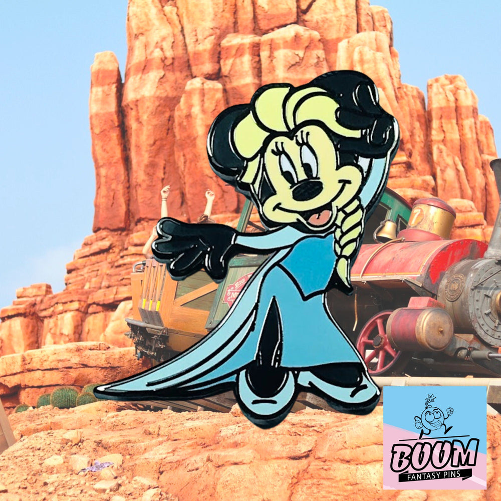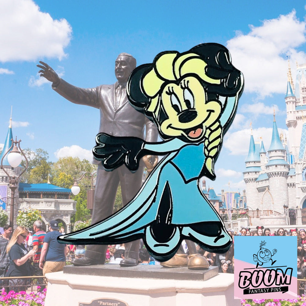- El encanto clásico se encuentra con la fantasía : una mezcla armoniosa de la inocencia eterna de Minnie y la presencia imponente de Elsa, este pin te transporta a un mundo donde los soñadores reinan supremos.