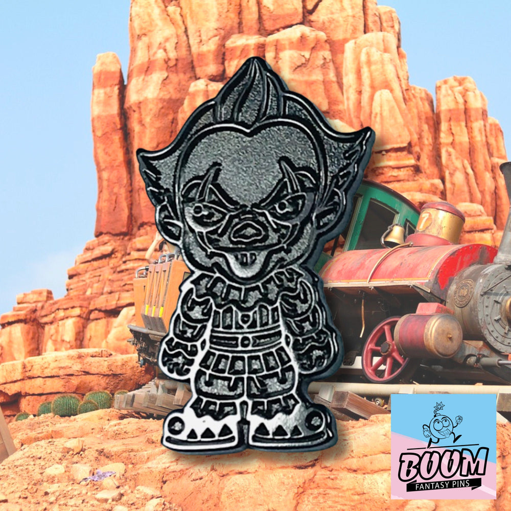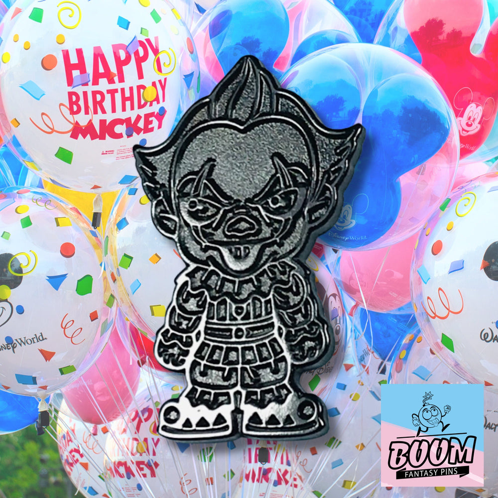El arte detrás del Pin de Pennywise de IT es una obra de amor y precisión, donde cada línea y color se elige para evocar el espíritu inquietante del personaje. Inspirado en escenas clave —la siniestra invitación de Pennywise, el inquietante resplandor del carnaval, la amenaza de medianoche que acecha—, el diseño equilibra la amenaza con un encanto sobrenatural.