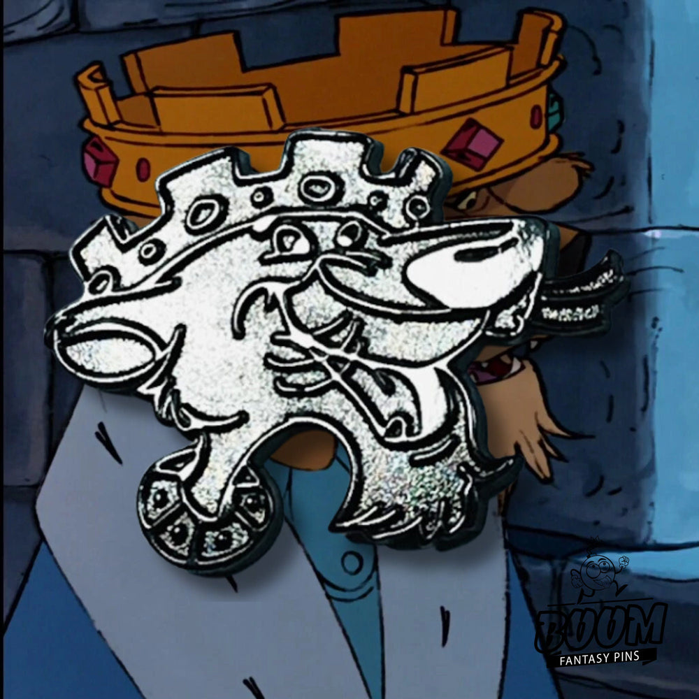Cada mirada a este pin te transporta a los bulliciosos salones del castillo, donde la tiranía cómica del Príncipe Juan se despliega con un estilo grandilocuente. Sus enormes túnicas ondean en vibrantes tonos, su corona, precariamente colocada, simboliza su inseguro apego al poder. Aquí reside la personificación del clásico encanto del villano: un antagonista tan imperfecto como fascinante, cuya personalidad desbordante provoca tanto desprecio como afecto.