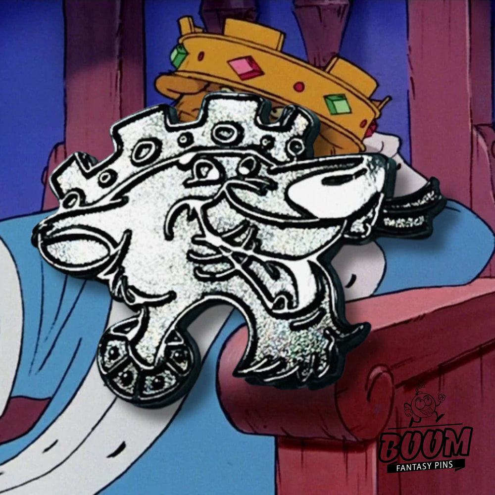 - 👑 Bufonería real capturada : el pin representa vívidamente la corona enorme y las intrincadas túnicas del Príncipe Juan, mostrando su combinación de arrogancia real y vulnerabilidad cómica que los fanáticos adoran.