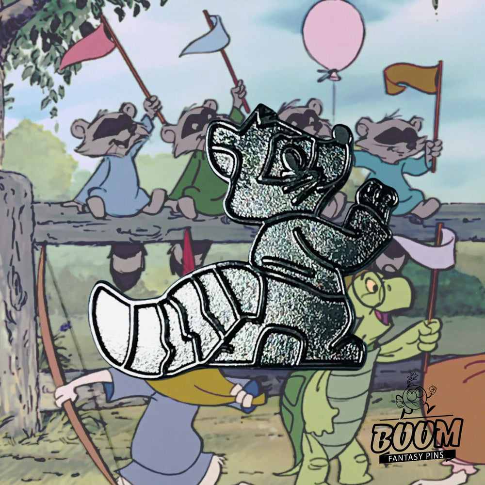 Invita al astuto mapache a tu mundo, no solo como un objeto de colección, sino como un compañero en tu viaje por las aventuras de la vida. Deja que su juguetona rebeldía y su ingenioso encanto te inspiren a buscar la libertad, cultivar la amistad y deleitarte con la magia que se esconde en los momentos cotidianos. Este pin es un pequeño talismán de valentía y alegría, un susurro de la eterna llamada de Sherwood a la naturaleza salvaje.