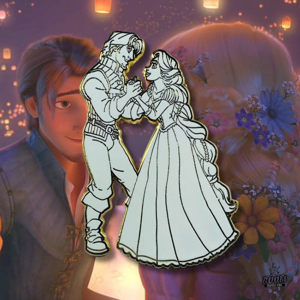 Descubre el proceso creativo que da vida a este pin: la meticulosa pincelada, la cuidadosa selección de colores y la evocadora composición que, en conjunto, crean una pieza llena de profundidad emocional y atractivo visual. Descubre cómo cada detalle, desde la suave sonrisa de Rapunzel hasta la atrevida mirada de Flynn, refleja la esencia de la historia.