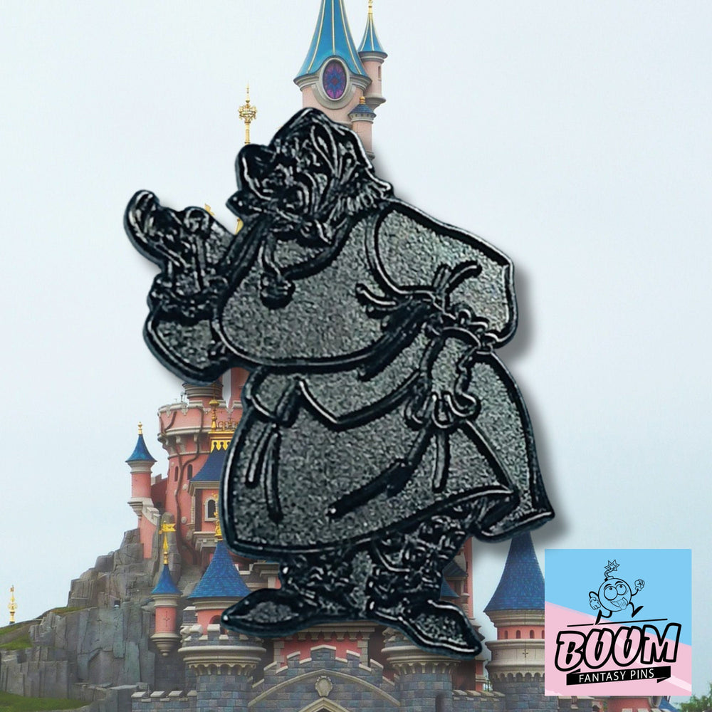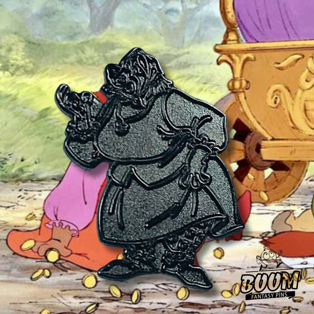 Con cada mirada a este pin, sienta el eco de antiguos juramentos y promesas susurradas: un recordatorio de que el verdadero heroísmo nace de la lealtad y una férrea dedicación al bien común. La noble presencia de Sir Reginald queda inmortalizada aquí, capturando la eterna danza de amistad y coraje que define el mundo de Robin Hood . No es un simple recuerdo; es un talismán de valor y de firmeza de corazón.