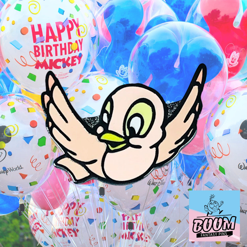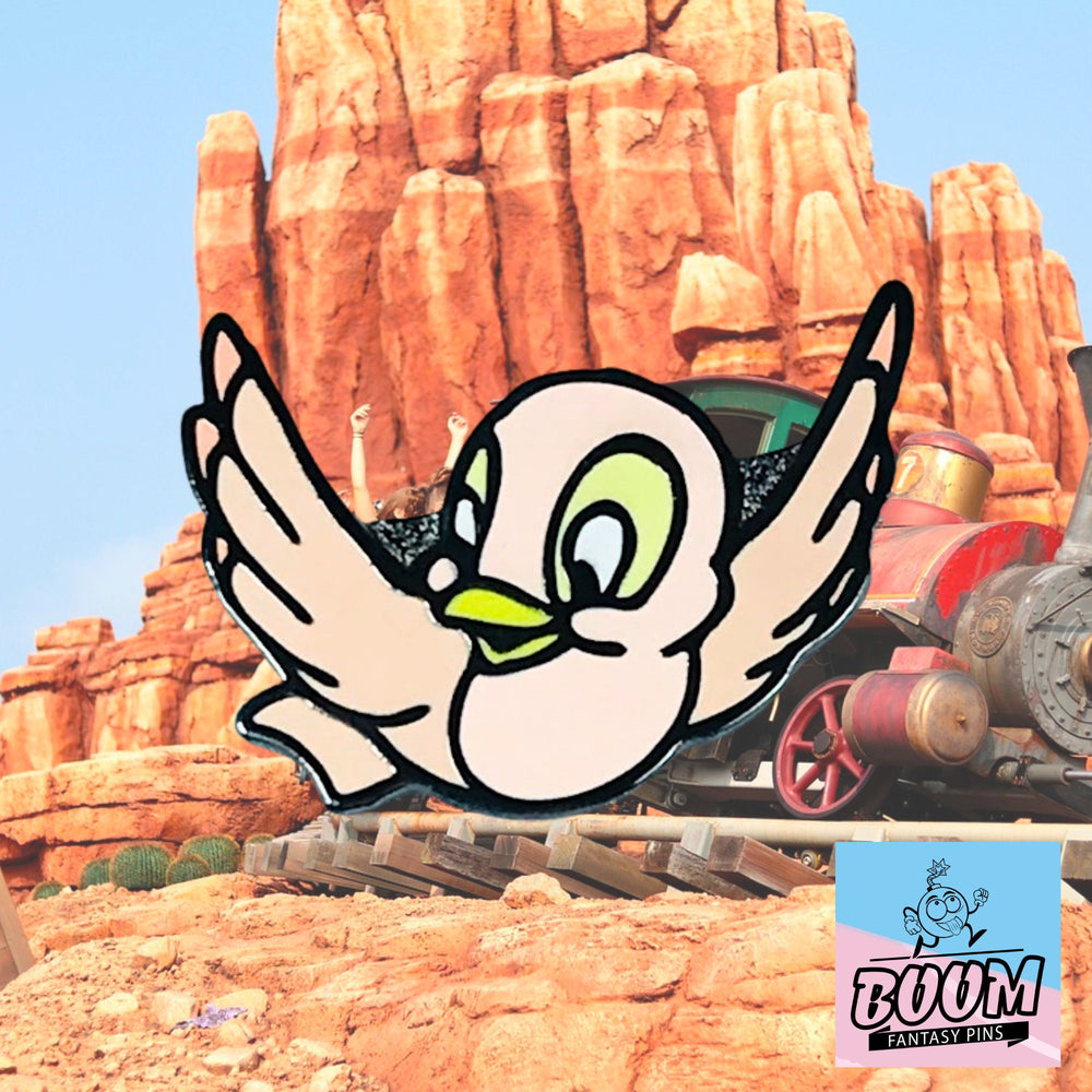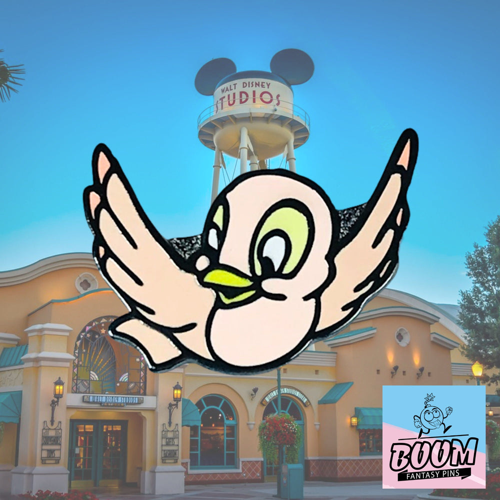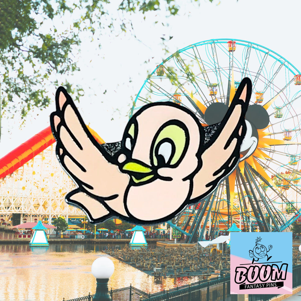 🌸 Encantamiento de pájaro rosa : el caprichoso pájaro rosa posado cerca simboliza la inocencia y el vínculo mágico entre Blancanieves y las criaturas del bosque, lo que realza el encanto de cuento de hadas del pin.