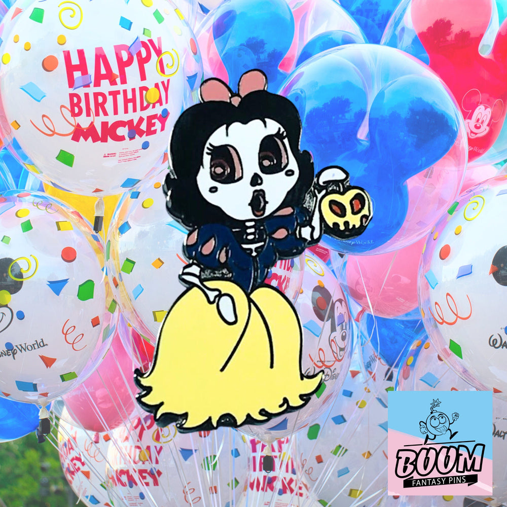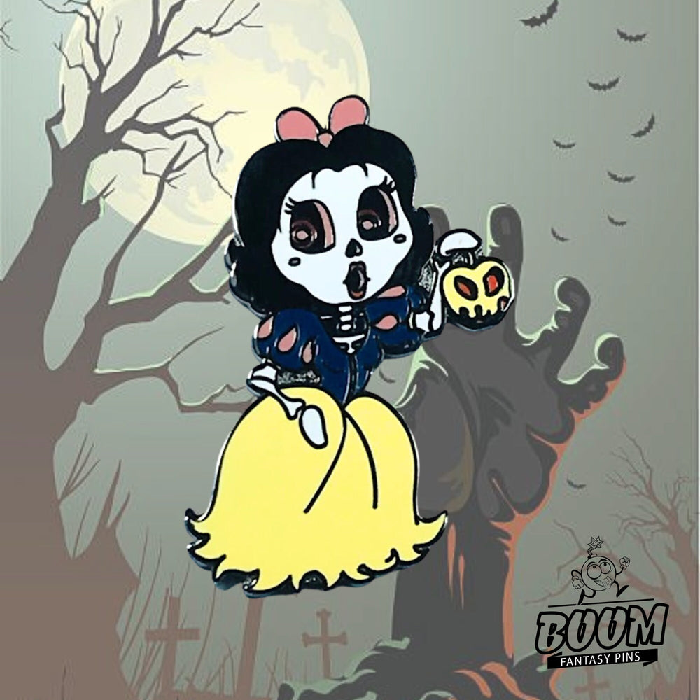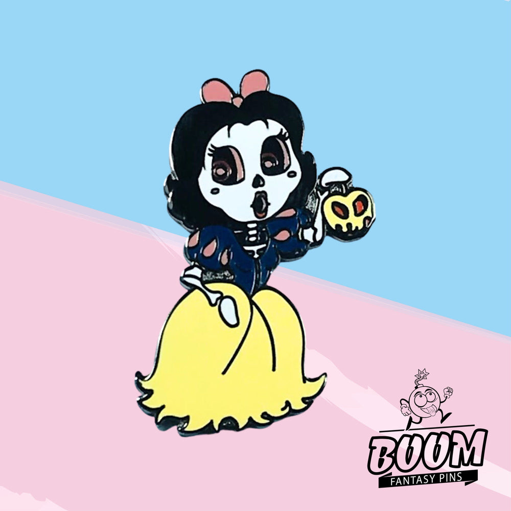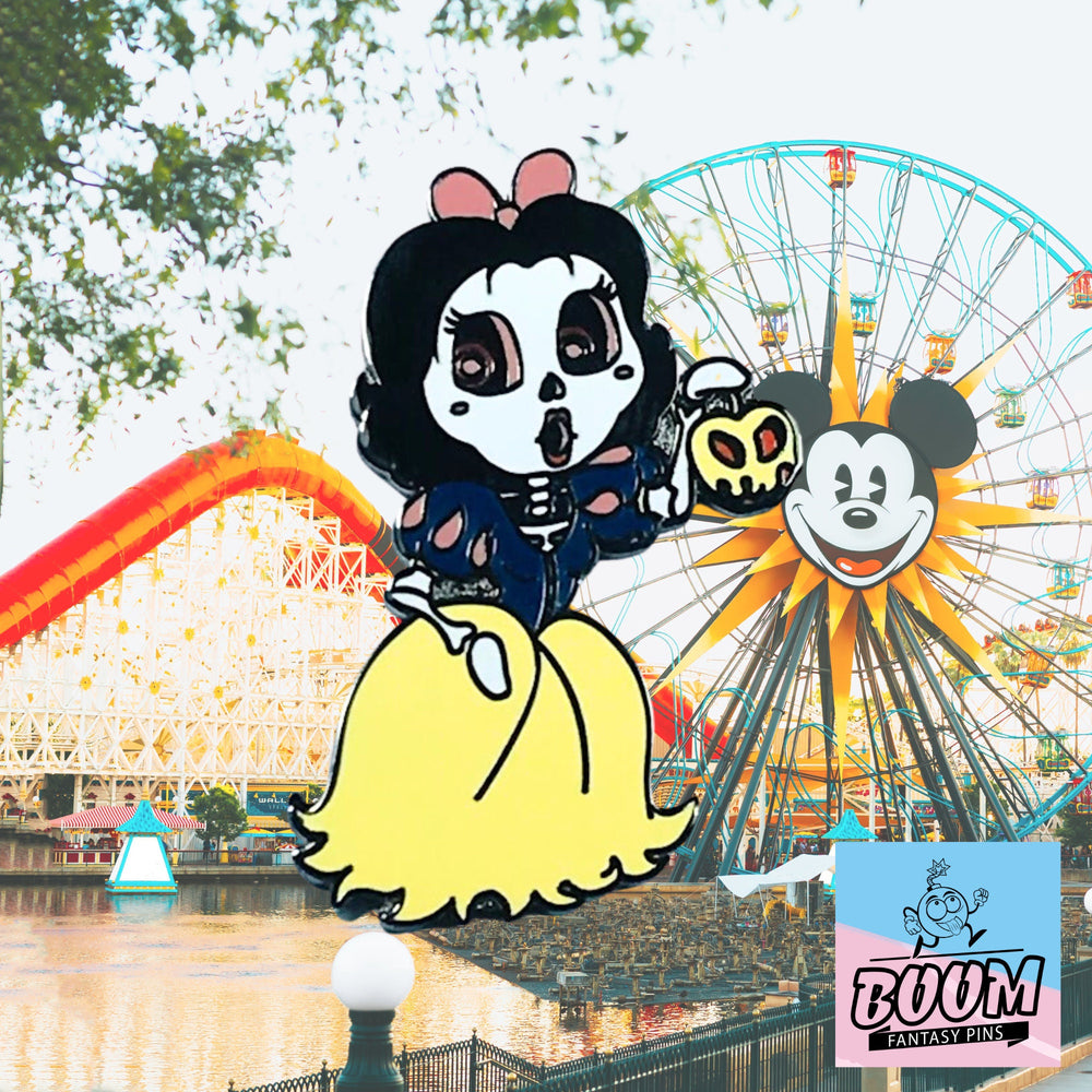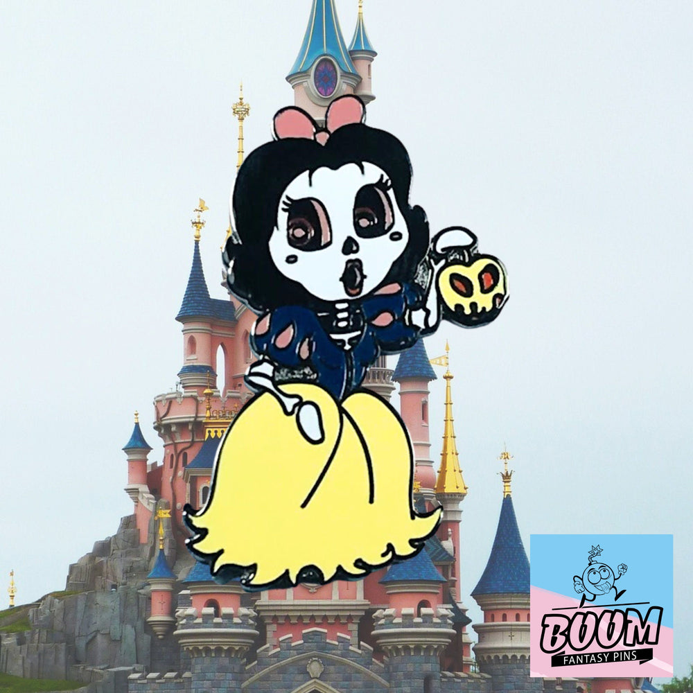 - Interpretación de estilo zombi : este pin redefine la inocencia de Blancanieves al fusionar su belleza clásica con un inquietante encanto de no-muerto, creando una dualidad cautivadora que encanta a los fanáticos del terror y de los cuentos de hadas por igual.