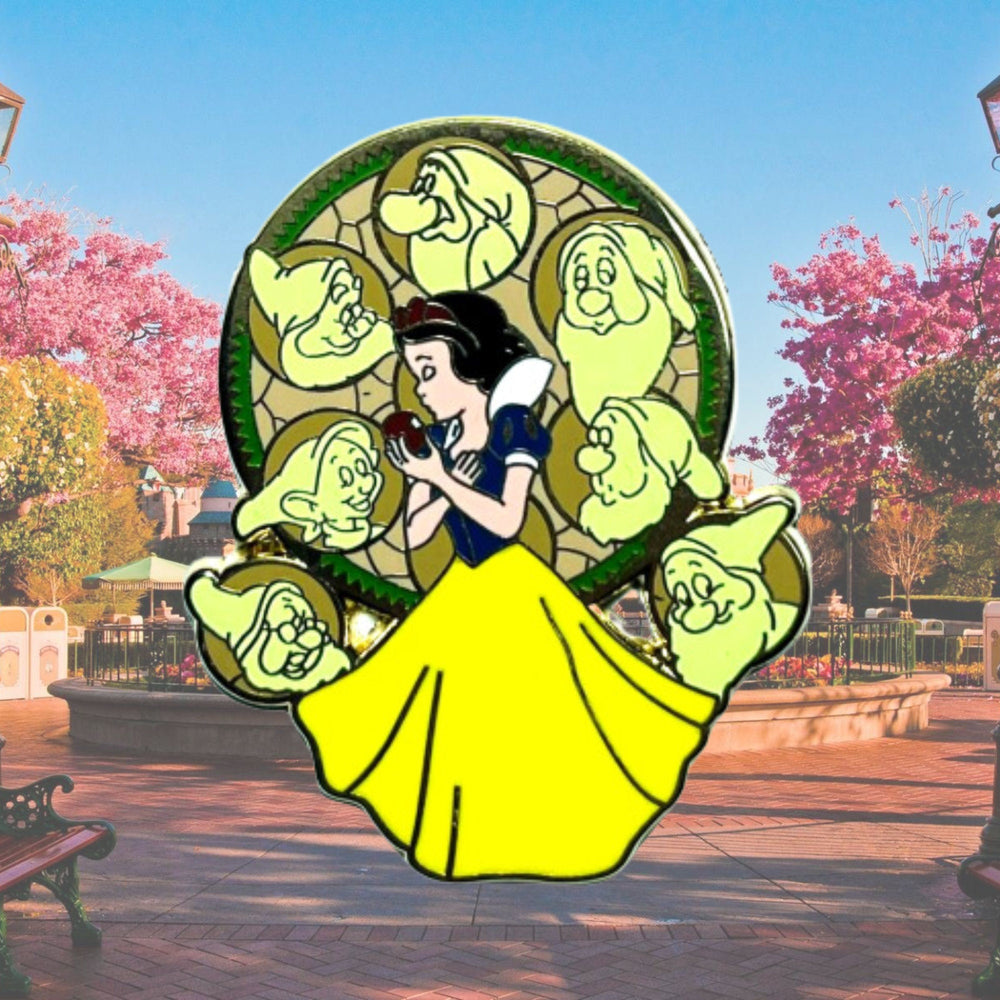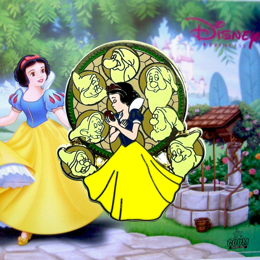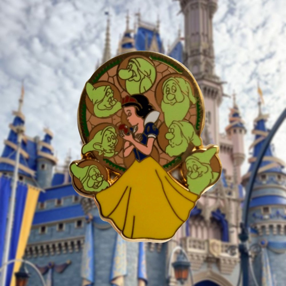 Encanto Real: Cada color, desde el azul rey de su corpiño hasta el amarillo dorado de su falda, refleja el clásico atuendo de princesa que ha definido a generaciones de fans. Los ricos tonos del pin celebran el estatus real de Blancanieves y resaltan su humildad y bondad.
