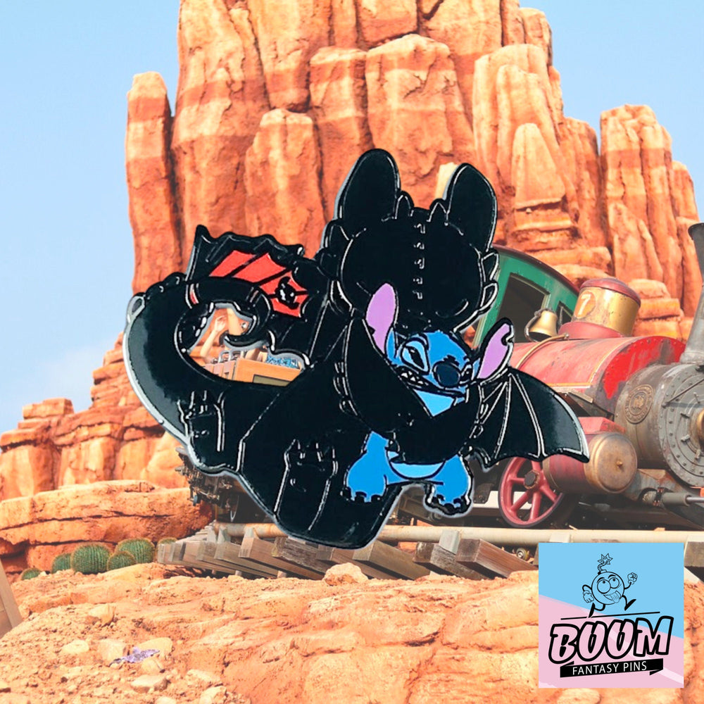 Este pin coleccionable captura esa esencia: una celebración de dos espíritus entrelazados por el destino y la diversión. Los vibrantes azules del pelaje de Stitch y los elegantes tonos medianoche de Desdentao cobran vida en un diseño que rebosa energía y calidez, un emblema perfecto para los fans que aprecian el vibrante tapiz de sus historias compartidas. A través de este homenaje artístico, la sonrisa traviesa del juguetón extraterrestre y la mirada perspicaz del dragón te invitan a llevar un poco de su magia adondequiera que te lleven las aventuras de la vida.
