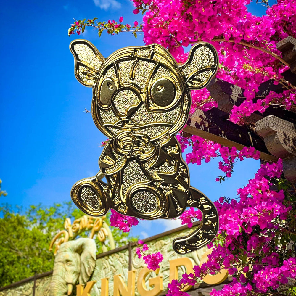 Elaborado con devoción por el detalle y la emoción, el diseño del tigre dorado de este pin es una fusión magistral de visión artística y narrativa conmovedora. Los brillantes tonos dorados evocan el radiante sol de la isla, mientras que las intrincadas líneas capturan la energía dinámica y el espíritu juguetón de Stitch.