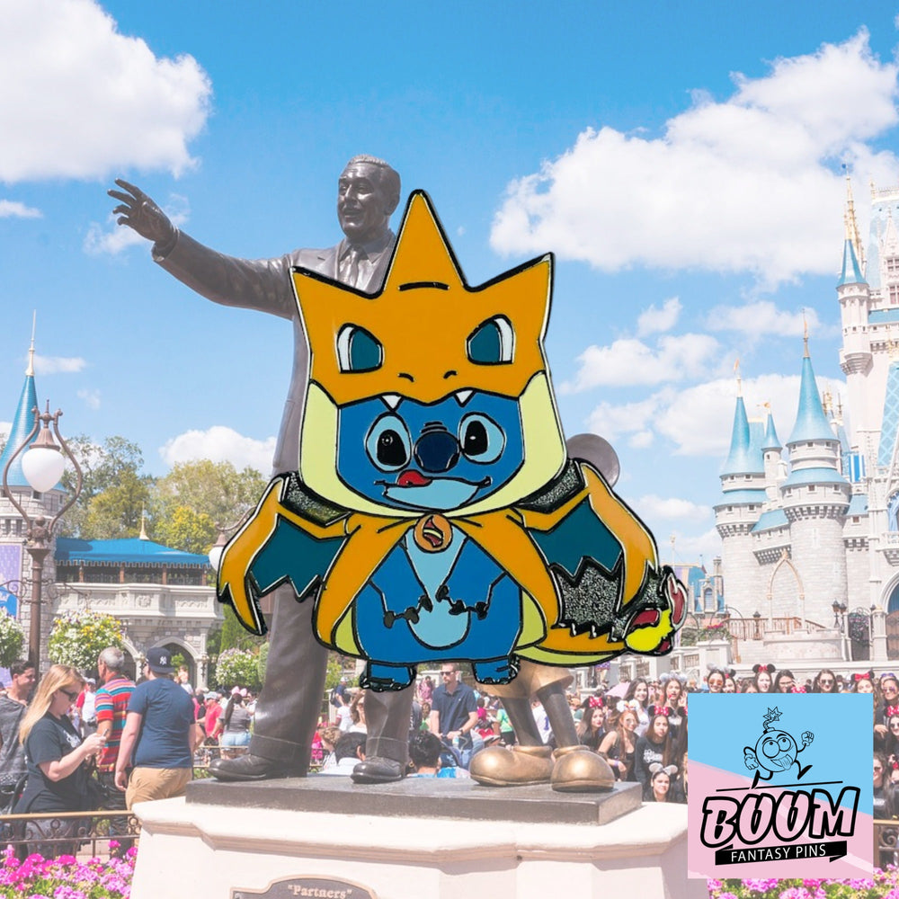 Sumérgete en la vibrante fusión de dos universos donde el corazón travieso de un experimento extraordinario se fusiona con el espíritu ardiente de una criatura legendaria. Pin: Stitch de Lilo y Stitch – Disney Fantasy | El regalo crossover de Stitch como Charmander para coleccionistas de Disney y fans de Lilo te invita a adentrarte en un reino donde el aloha y la aventura se encienden en una espectacular historia de transformación y amistad.