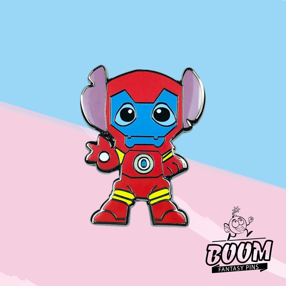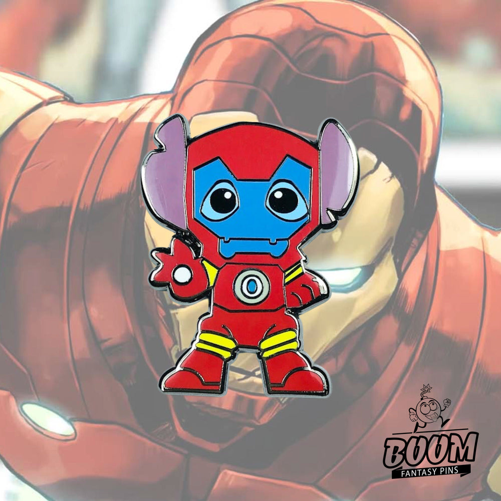 La artesanía se fusiona con la narrativa en este exquisito pin, donde cada pincelada y elección de color se ha aplicado con esmero para evocar emociones y capturar la esencia del personaje. Los vibrantes azules del pelaje de Stitch se arremolinan dinámicamente, mientras que los elegantes detalles metálicos inspirados en la armadura de Iron Man añaden un contraste cautivador, simbolizando fuerza e innovación.