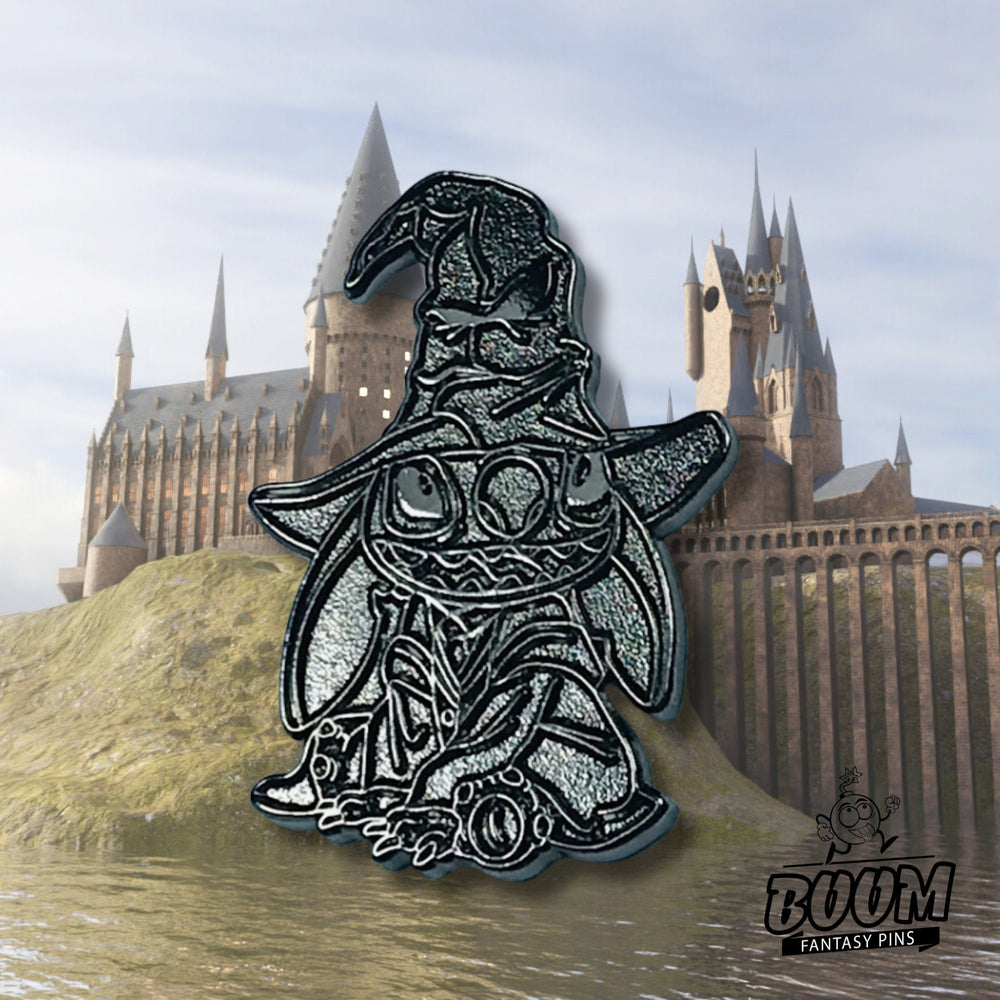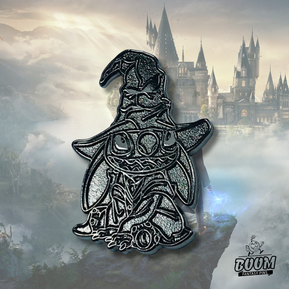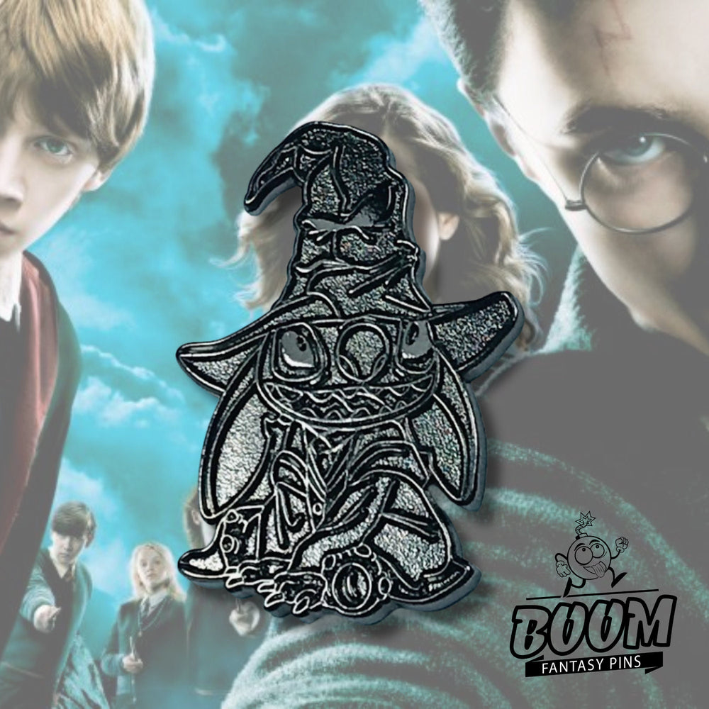 Experimenta el encanto donde la magia ancestral del mundo mágico danza con la maravilla cósmica del universo de Stitch. Este pin te invita a adentrarte en un reino donde el destello de los pasillos iluminados por las velas se fusiona con el brillo de las galaxias estrelladas, creando un tapiz sensorial de aventura y magia. Los colores de Gryffindor brillan como un faro, mientras que la pose vivaz de Stitch captura la esencia de la rebelión mágica y la exploración alegre.