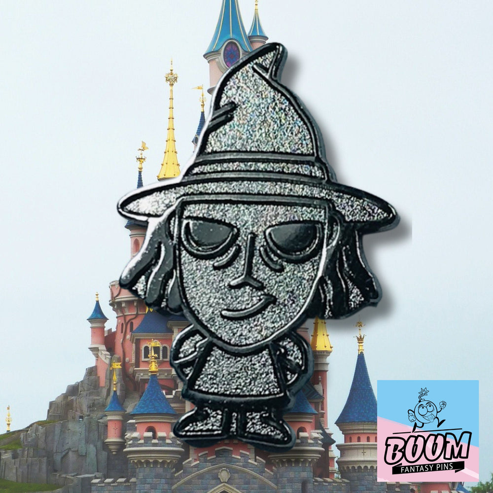 En este pin, cada pincelada captura la dualidad de la naturaleza de Witch Shock: su encanto cautivador y la amenaza latente que acecha bajo su mirada. Es un homenaje a la fantasía gótica que ha cautivado al público durante décadas, invitando a coleccionistas y admiradores a sostener un fragmento de la mística atemporal de Halloween Town.
