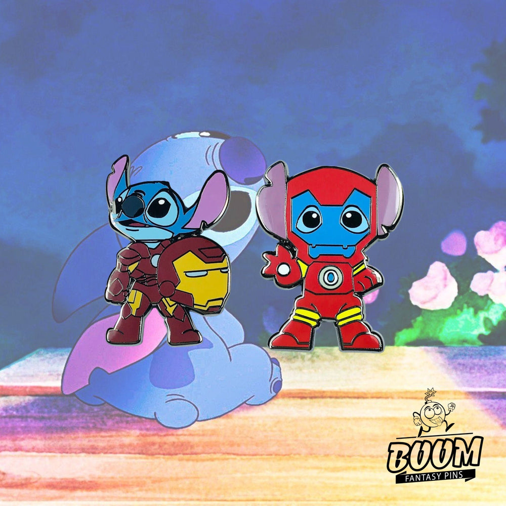 Eleva tu colección con este emblema de unidad del fandom, donde la energía irreprimible de Stitch se fusiona con la fuerza icónica de un héroe con armadura. Descubre este crossover único y celebra la alegre aventura de ser tú mismo sin complejos. Agrega este deslumbrante pin a tu colección hoy mismo y adéntrate en un mundo donde lo extraordinario es cotidiano. ✨