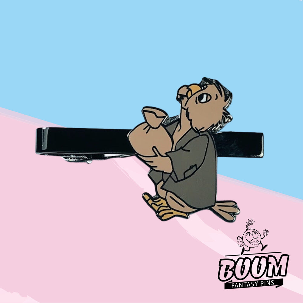 En Boom Fantasy Pins , atesoramos estos momentos de magia cinematográfica, transformándolos en recuerdos exquisitos y tangibles que te permiten llevar tu fanatismo contigo todos los días. Nuestro alfiler de corbata – Pájaro con bolso de Robin Hood – Disney Fantasy | Accesorio único y peculiar inspirado en personajes clásicos de aventuras animadas es más que un accesorio: es un portal a una historia imperecedera, cuidadosamente elaborado para capturar la esencia de la aventura en el bosque y las travesuras nobles.