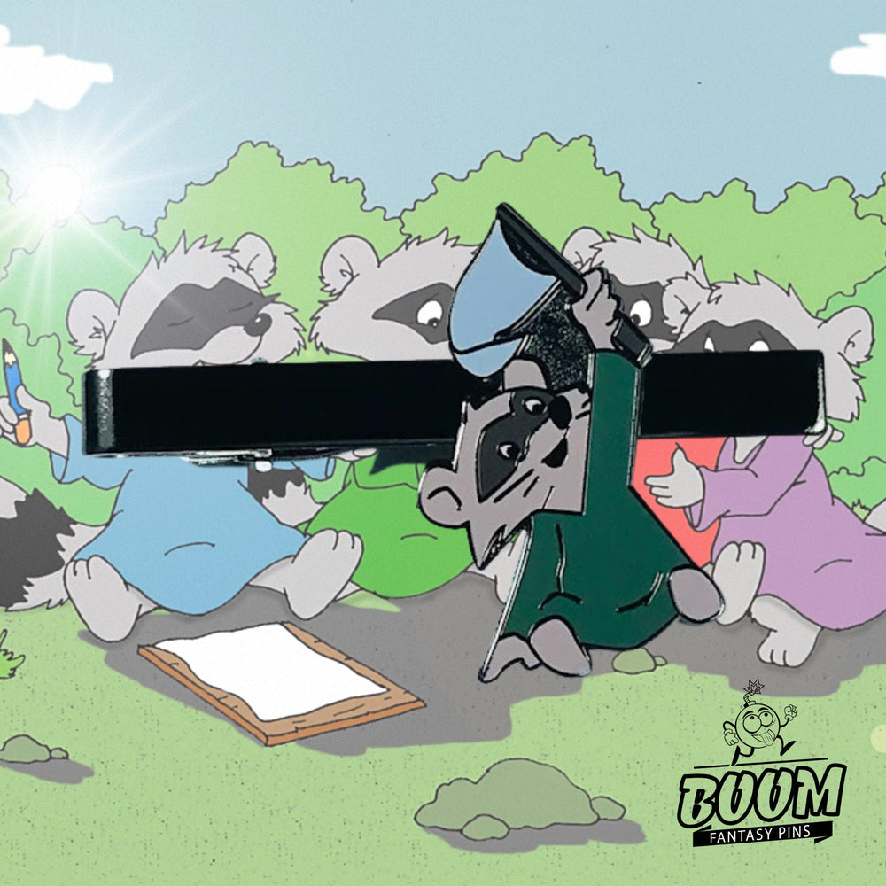 Cada mirada a este pasador de corbata te transporta a los claros secretos de Sherwood, donde la amistad florece ante el peligro y cada manifestación bajo la bandera es una celebración de esperanza. El Mapache de la Bandera Azul encarna esta energía vibrante, llevando consigo la esencia de la aventura en el bosque que los aficionados aprecian: un recordatorio de que la magia florece cuando los corazones laten al unísono.