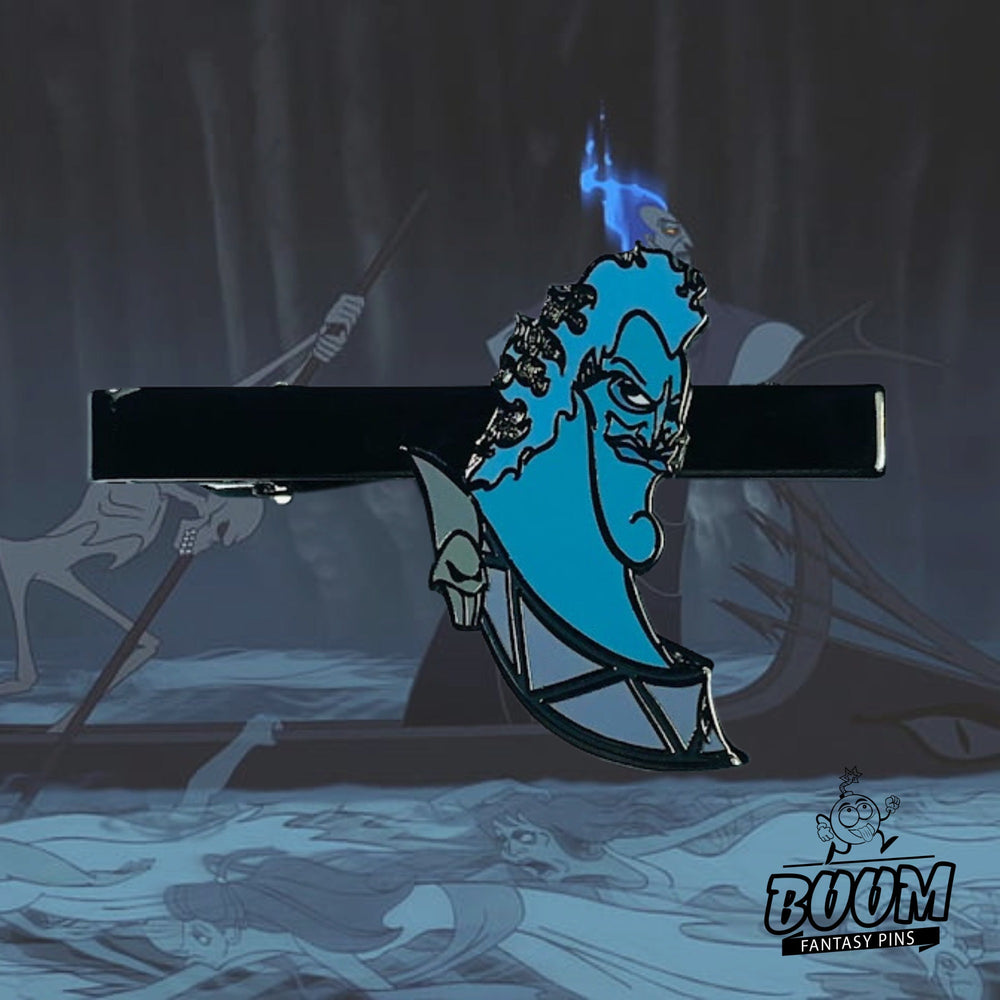 Imagina el resplandor parpadeante del inframundo, el aire gélido que agita el mismísimo dios de los muertos, cuya llameante corona azul vibra con cada pensamiento intrigante. Su sonrisa maliciosa insinúa una combinación de maldad y poder, testimonio de un personaje tan complejo como los propios mitos. Este pasador de corbata te trae esa misma esencia: un artefacto en miniatura que captura la amenaza y el magnetismo que definen a Hades.