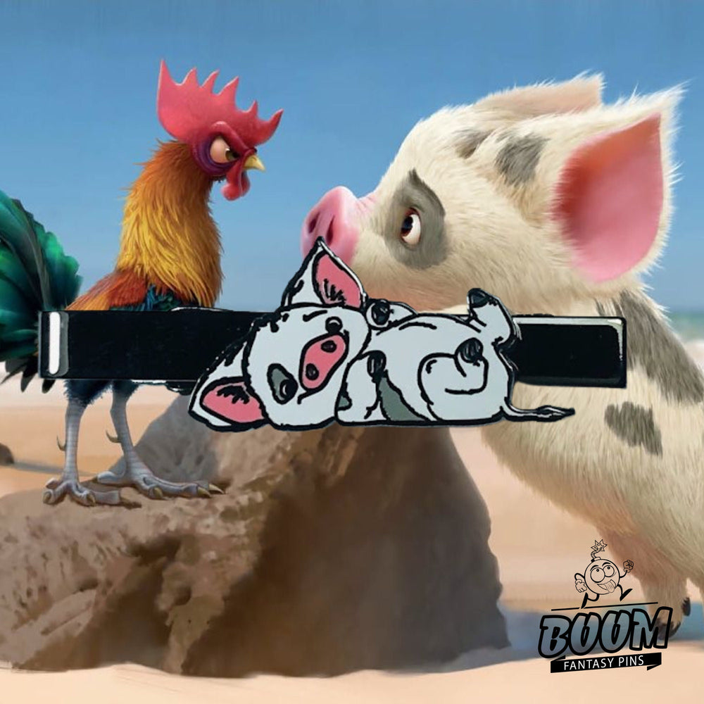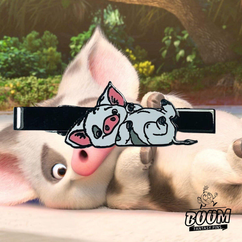 Desde los tiernos momentos compartidos en la arena dorada hasta las animadas celebraciones bajo el sol isleño, el encanto de Pua es un testimonio del vibrante espíritu de la cultura polinesia. Sus travesuras juguetonas y su firmeza aportan ligereza a los momentos más desafiantes del viaje de Moana, ilustrando que incluso las criaturas más pequeñas pueden dejar huellas imborrables en nuestras vidas. Este pasador de corbata, elaborado con reverencia y maestría, te invita a llevar contigo una parte de ese encanto: un emblema de lealtad, alegría y aventura tropical dondequiera que te lleve el camino.