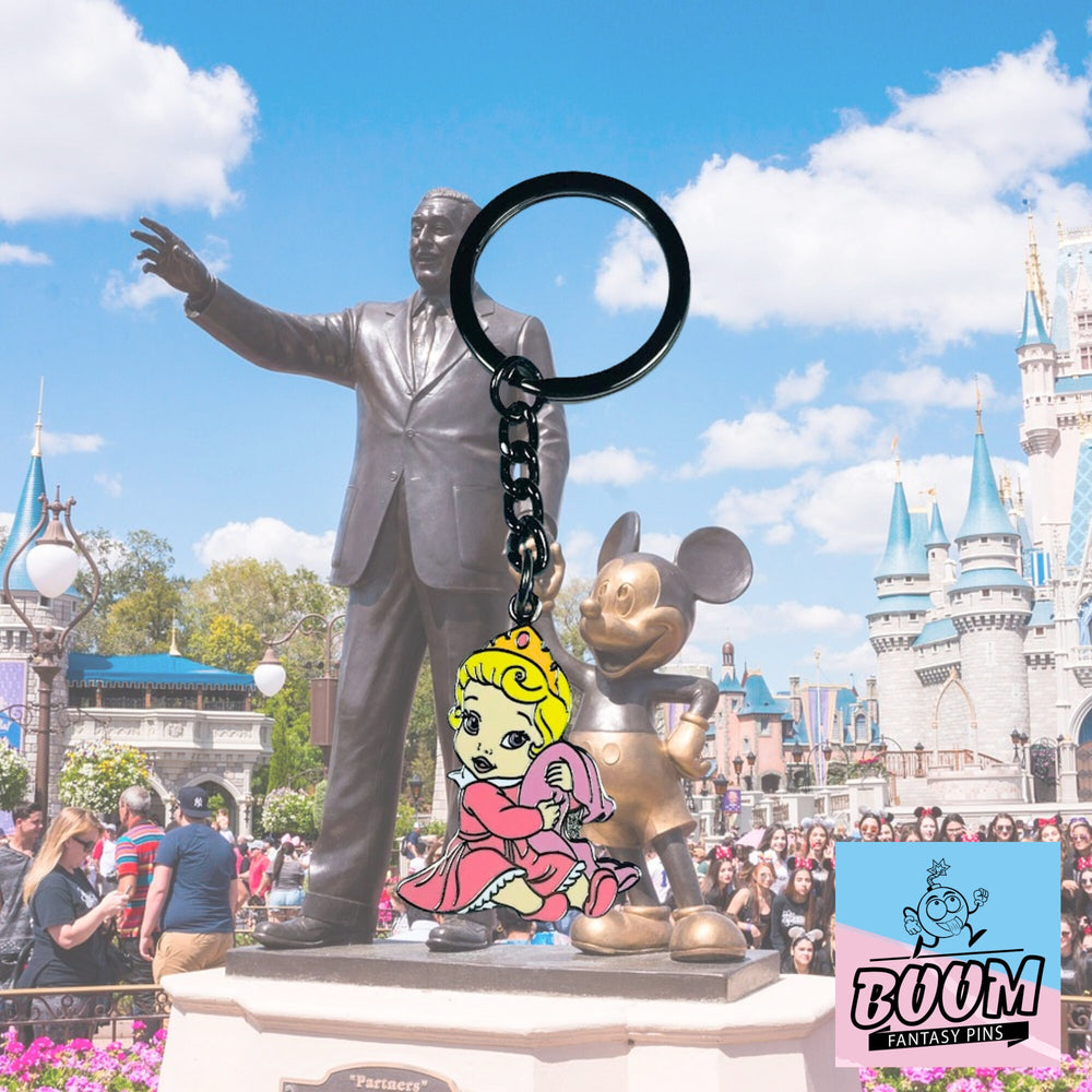 - 🌿 L'Étreinte de la Nature — orné de délicates touches florales symbolisant son lien profond avec les bois enchantés, ce porte-clés insuffle la vie à la magie qui entoure les premiers jours d'Aurora.
