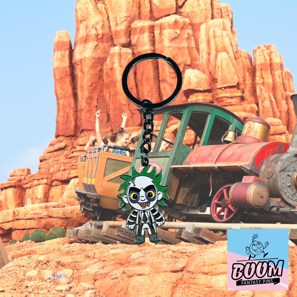 Que ce porte-clés soit votre talisman au quotidien, un rappel du joyeux chaos et de l'individualité intrépide que Beetlejuice incarne. Accroché à vos clés, votre sac à dos ou vos objets de collection préférés, ce bijou vibre de l'énergie brute de l'un des fantômes les plus inoubliables de la pop culture. Emportez partout avec vous le « Fantôme le plus excentrique » et invoquez un peu de son anarchisme ludique quand bon vous semble.