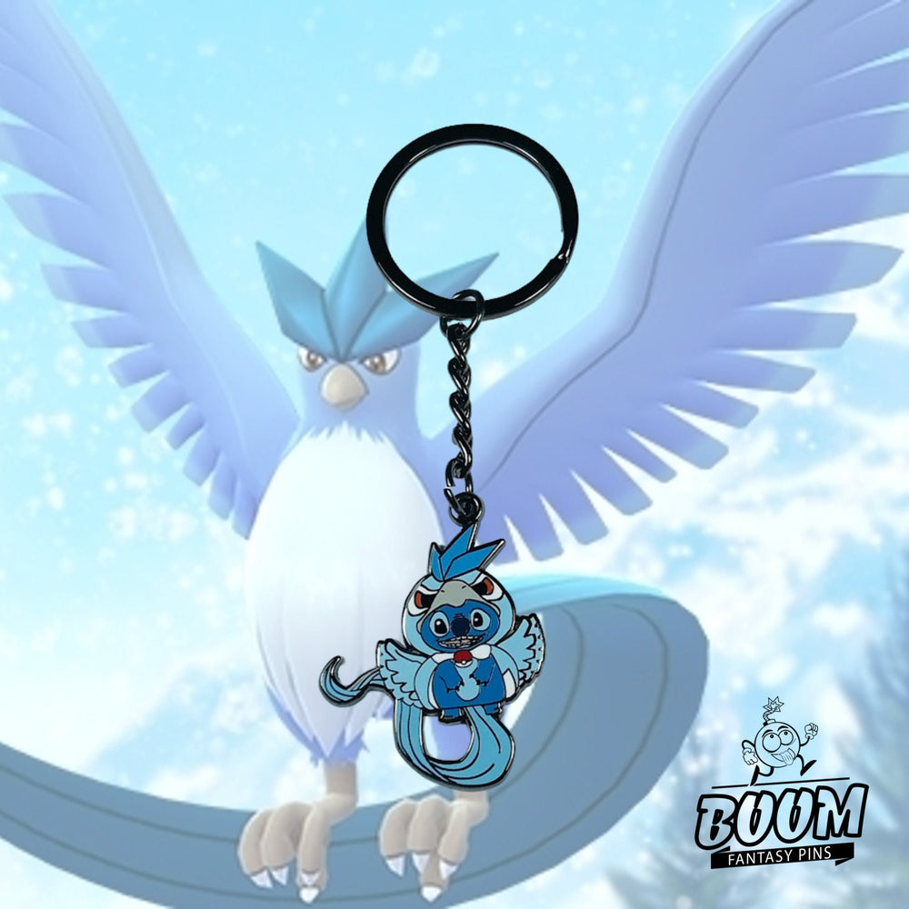 - 🦜 Fusion symbolique — Ce porte-clés associe de manière unique l'essence extraterrestre et ludique de Stitch à l'élégance glacée et majestueuse d'Articuno, créant un récit visuel qui fait le lien entre chaleur et froid, chaos et calme, malice et majesté.