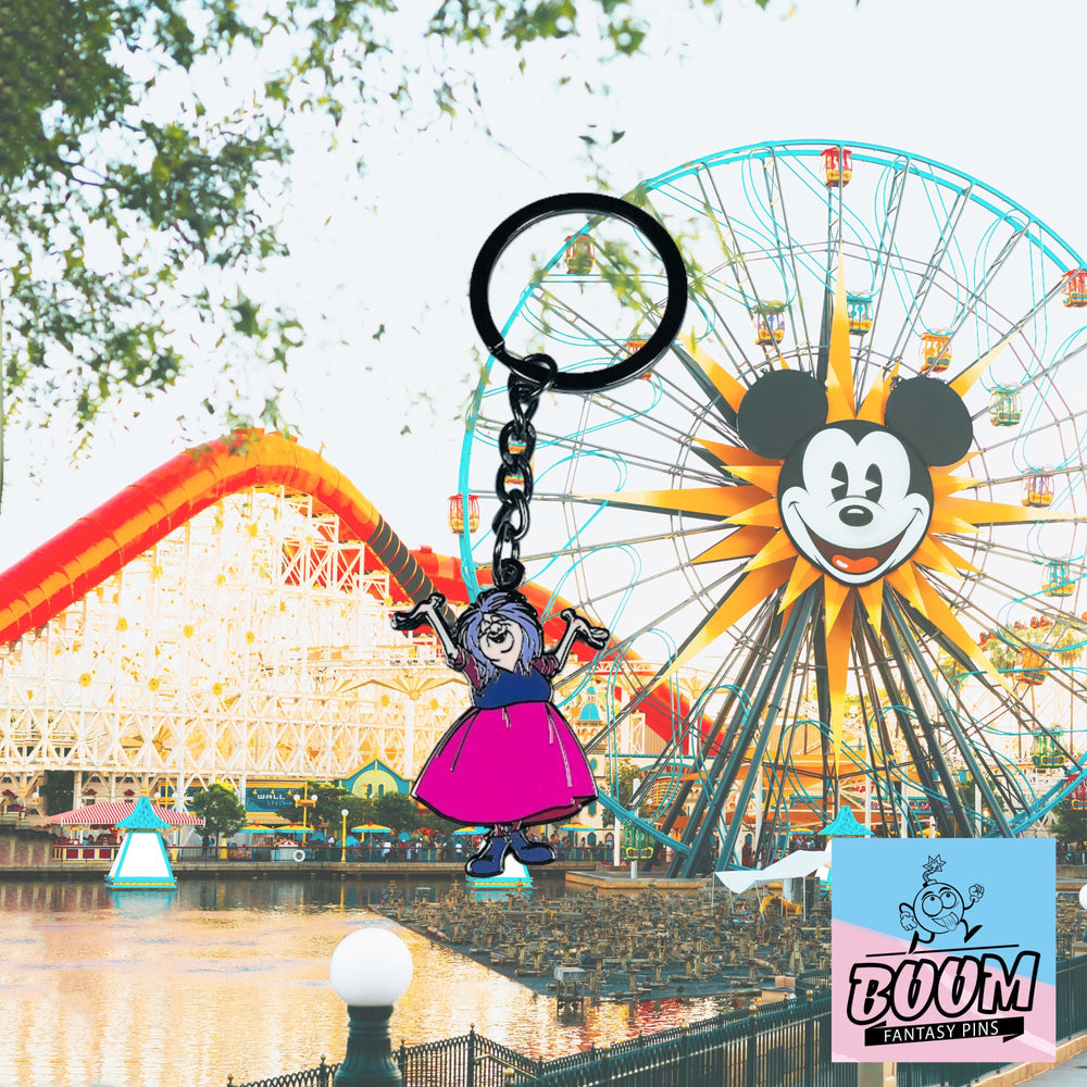 Chaque détail est une touche de passion : la chevelure indomptée de Madame Mim, son sourire radieux, l’éclat de ses yeux… tout est rendu avec une vivacité qui insuffle la vie au personnage. Inspiré du style de l’animation classique et imprégné d’une vision artistique inédite, ce porte-clés est un véritable chef-d’œuvre miniature d’art fantastique.