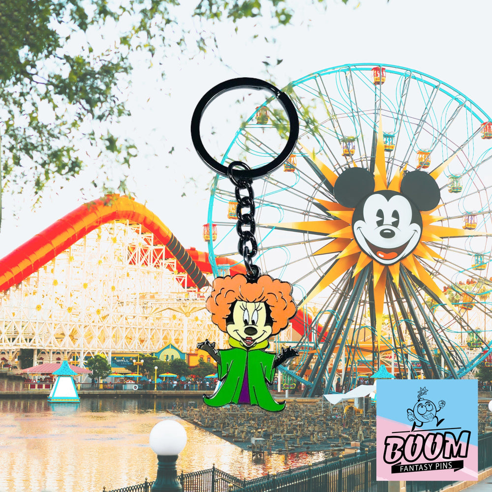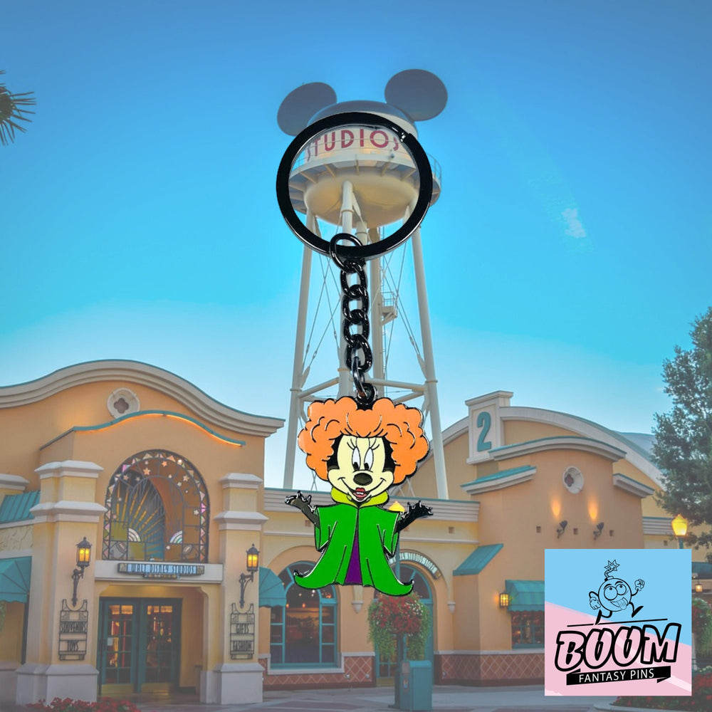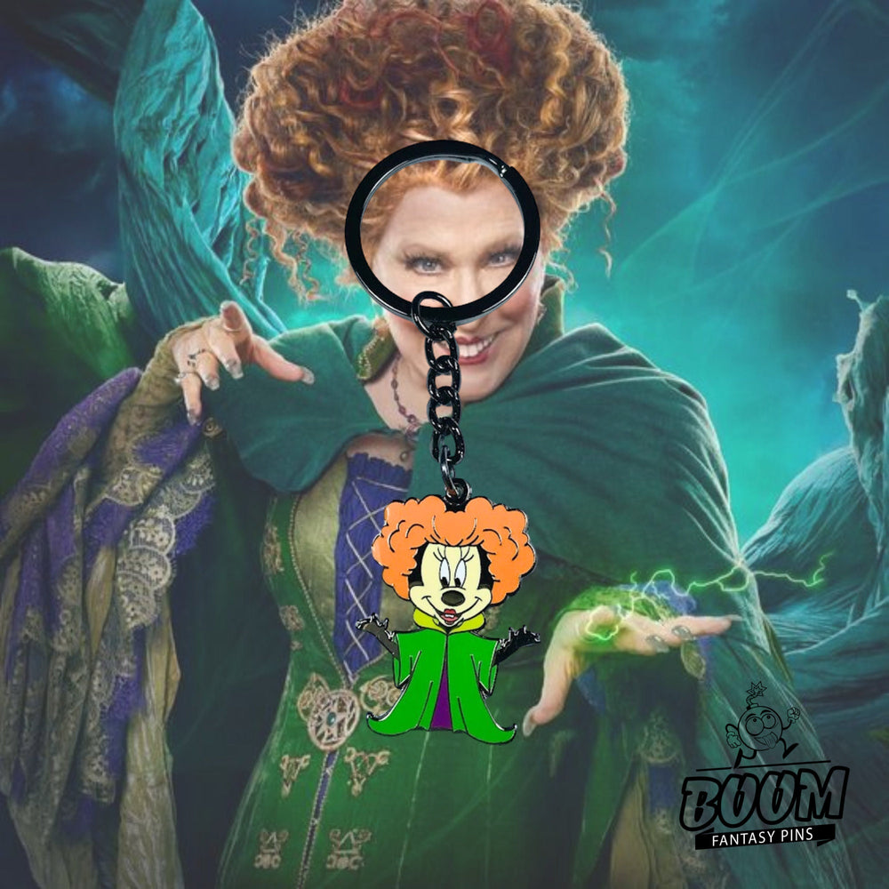 🎬 Plongez dans un univers où la fantaisie se mêle aux ombres d'Halloween, et où la magie danse au bord de la malice. Imaginez le moment où Minnie Mouse , icône adorée de joie et d'innocence, franchit le voile de la magie pour se transformer en Winifred Sanderson , la sorcière fougueuse et rusée du film culte Hocus Pocus . Ce n'est pas qu'un simple porte-clés ; c'est une porte ouverte sur un monde où le charme intemporel de Disney rencontre l'aura envoûtante d'une légende d'Halloween.