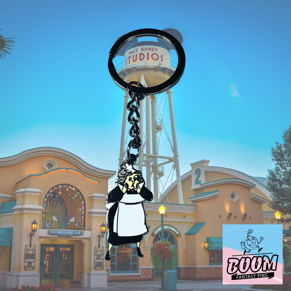 Désormais, emportez un morceau de cet héritage précieux partout avec vous grâce au porte-clés « Nounou des 101 Dalmatiens » de Disney Fantasy . Conçu comme un tendre hommage à la nounou adorée, ce porte-clés raffiné capture son charme classique grâce à des coups de pinceau délicats et une palette de couleurs douces et éclatantes qui évoquent la nostalgie du style d'animation intemporel du film. Son design reflète la tendre scène de la « poursuite d'évasion » digne d'un conte de fées, immortalisant la tension et l'espoir qui caractérisent le périlleux voyage des chiots.