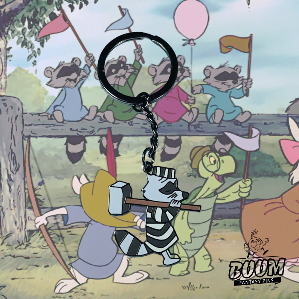 Plongez au cœur de la forêt de Sherwood et de ses mystères sensoriels : sentez la lumière du soleil filtrer à travers les feuilles, écoutez le crépitement du feu de camp et vibrez au rythme des aventures clandestines sous un ciel étoilé. Ce porte-clés raton laveur capture ces éléments magiques et vous transporte au cœur même de la forêt. Chaque coup de pinceau, chaque pose, restitue l'énergie vibrante des recoins cachés de la forêt, créant un lien tangible avec les récits d'héroïsme, de rires et de loyauté qui définissent la saga de Robin des Bois.