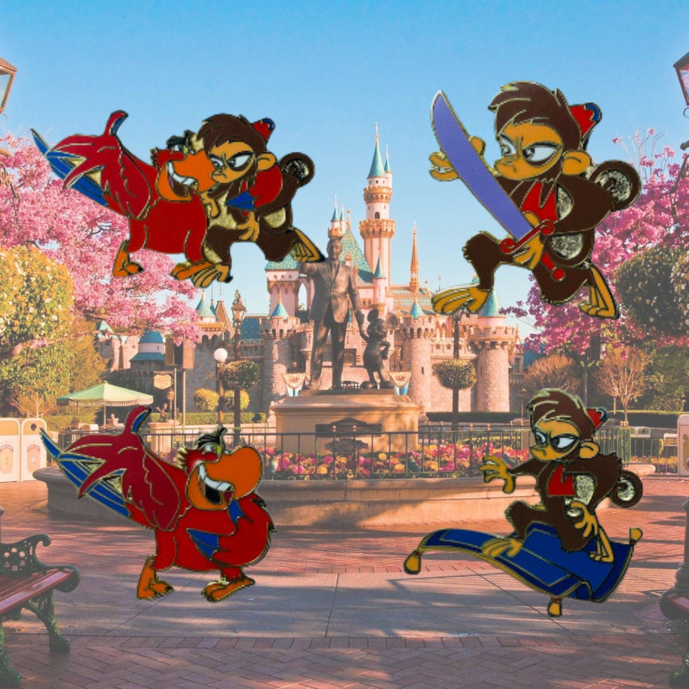 - ✨ Des tenues et un symbolisme emblématiques — le gilet classique d'Aladdin, la silhouette bleue éclatante du génie, le charme espiègle d'Abu et l'ensemble turquoise signature de Jasmine se réunissent pour célébrer la riche tapisserie culturelle d'Agrabah.