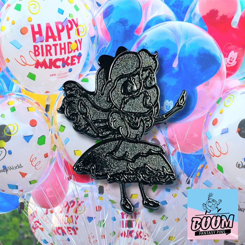 Chaque courbe, chaque couleur, chaque ombre de cette broche est minutieusement travaillée pour évoquer la beauté envoûtante du fantastique gothique, fusionnée à l'imagerie iconique d'Alice au pays des merveilles. L'œuvre traduit à la fois la fantaisie et la noirceur qui définissent le parcours réinventé de ce personnage, inspirée par d'innombrables récits de fans, l'esthétique gothique et la puissance intemporelle de l'héritage narratif de Disney.