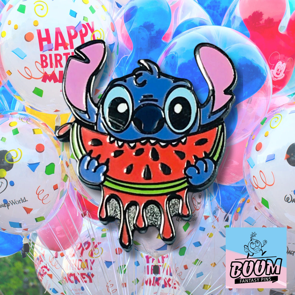 - 💙 Ce pin 's incarne l'esprit joueur de Stitch — capturé en pleine dégustation d'une tranche juteuse de pastèque — et célèbre sa personnalité espiègle mais attachante que les fans adorent à travers le monde.