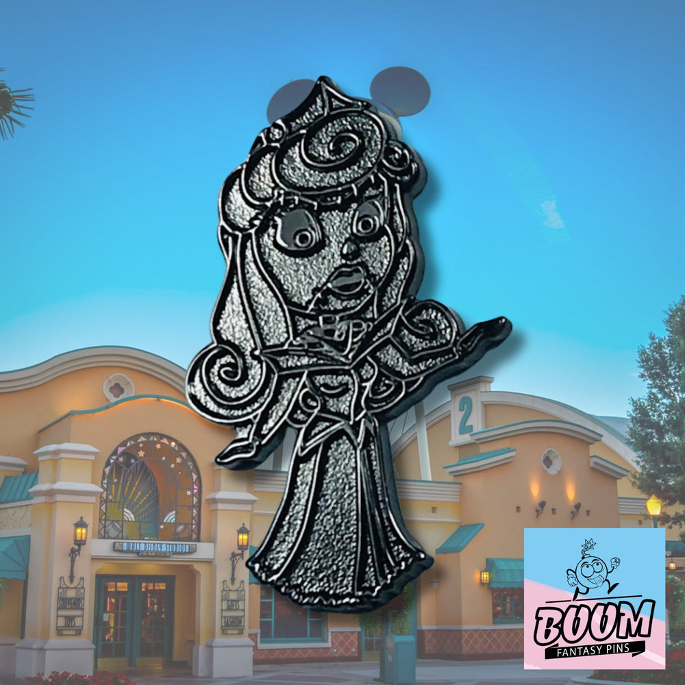 Plongez dans un univers où la lueur scintillante des forêts enchantées rencontre l'énergie vibrante des aventures intergalactiques. Cette section vous transporte dans le monde atmosphérique qui a inspiré le pin's : un décor à la fois envoûtant et magnifique, des teintes spectrales qui dansent autour de Stitch et une aura mystique qui insuffle la vie au dessin. Ressentez la magie qui unit les espiègleries joyeuses de l'Expérience 626 au mystère poignant du sommeil éternel de la Belle au Bois Dormant.
