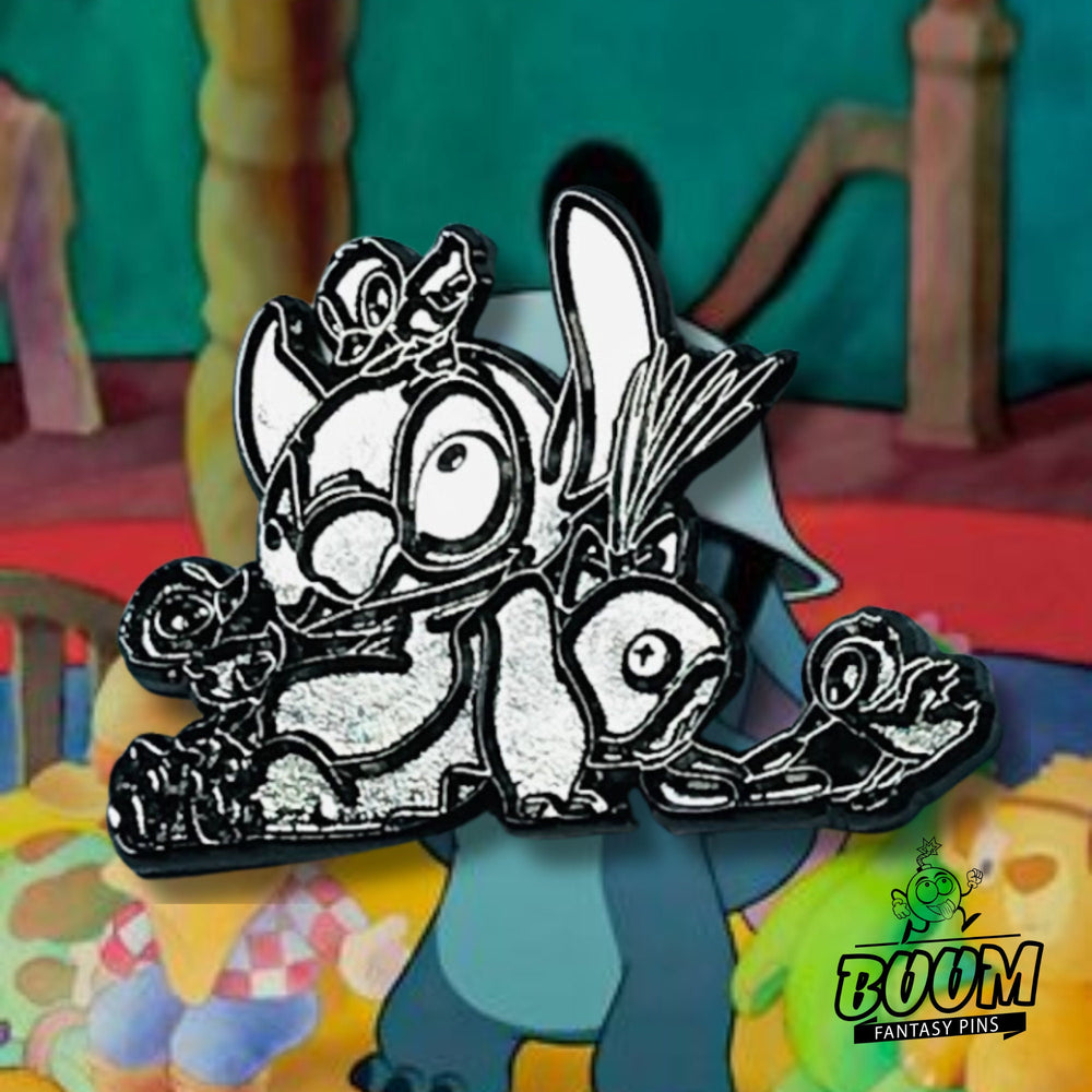 🌀 Incarnant l'espièglerie de Stitch , cette broche capture l'étincelle de l'énergie débordante et du sourire malicieux de l'Expérience 626, vous invitant à embrasser votre propre côté aventurier chaque jour.