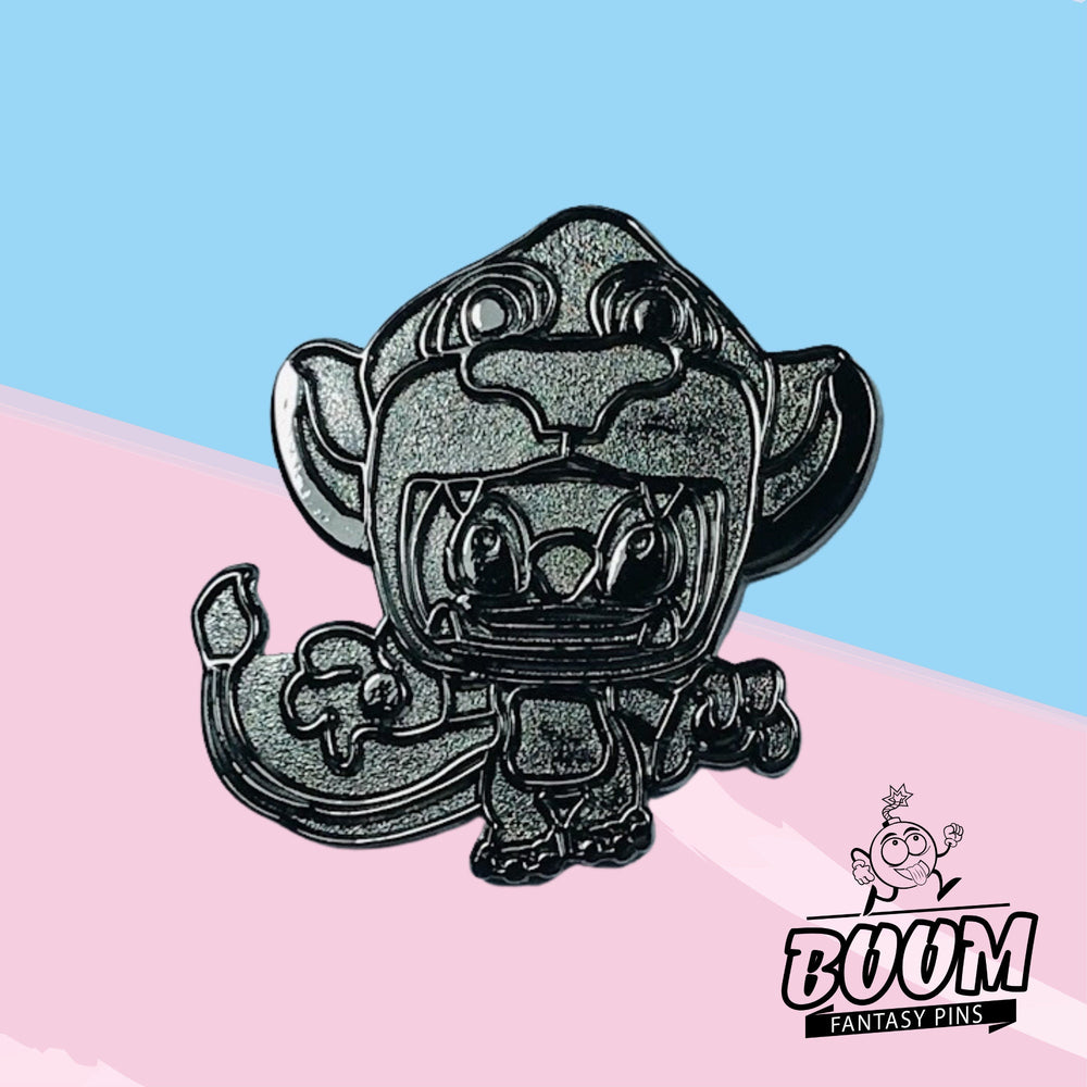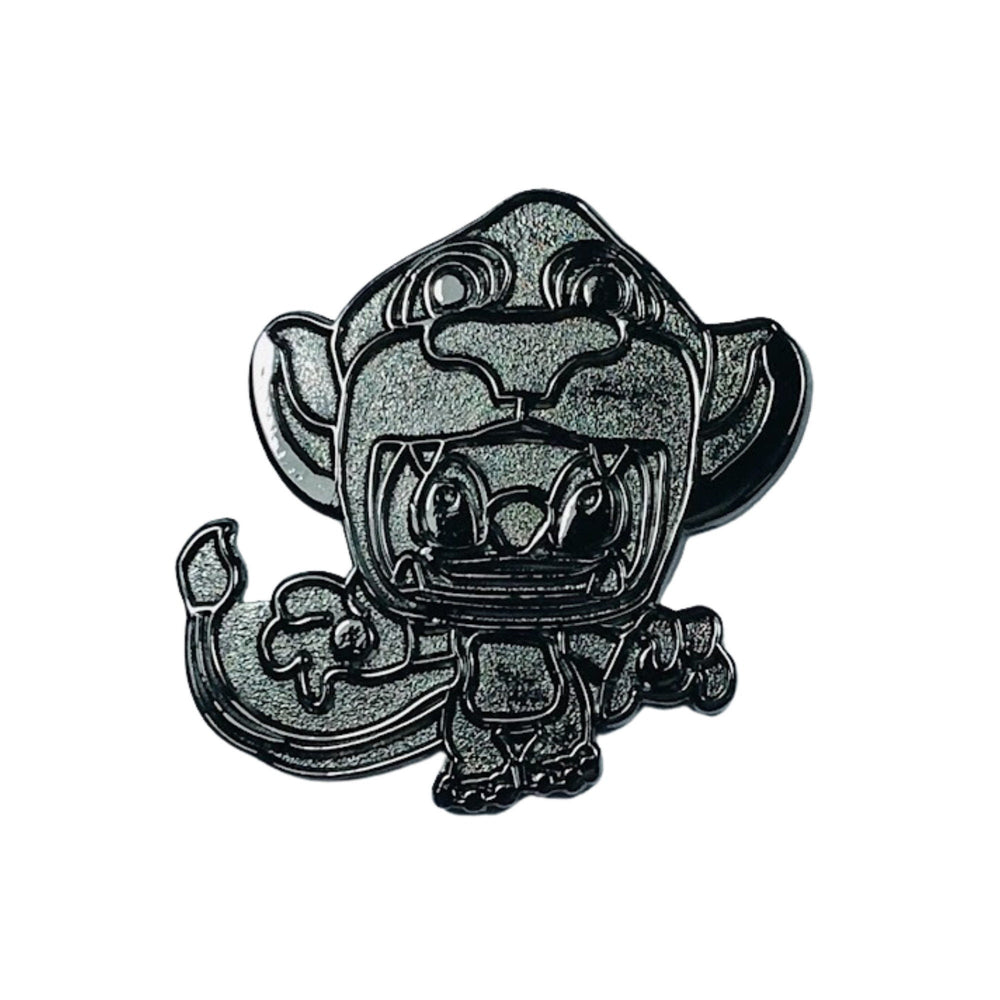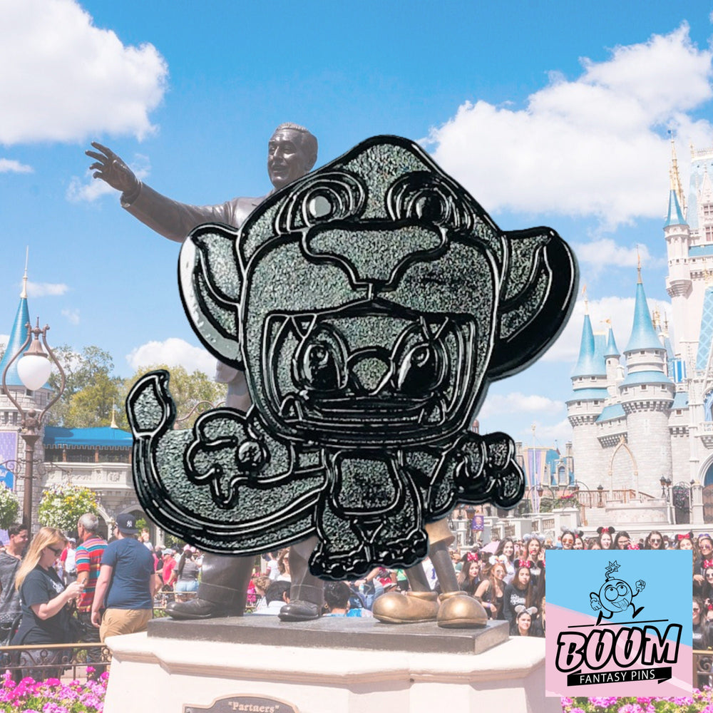 Chaque courbe, chaque silhouette est minutieusement conçue pour saisir toute la profondeur émotionnelle des deux personnages. De la légère inclinaison de la tête de Stitch à l'attitude assurée qui rappelle le rugissement emblématique de Simba, le pin's raconte une histoire d'évolution et d'identité. Le choix de fusionner ces deux figures emblématiques témoigne de l'esprit créatif de Boom Fantasy, où la passion des fans rencontre l'innovation artistique.