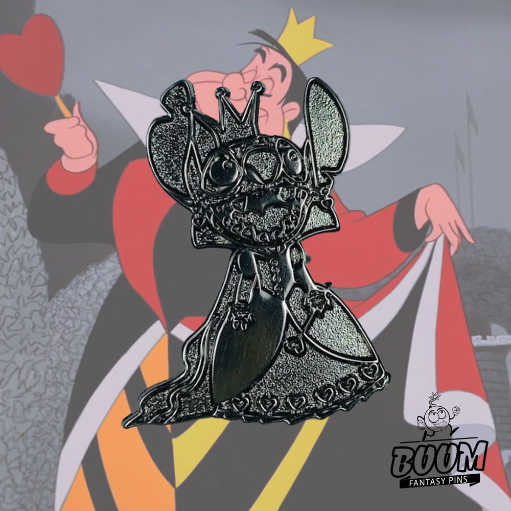 Au cœur de cette fable cosmique, l'esprit espiègle de Stitch côtoie les motifs royaux de la fantaisie, mêlant le sauvage au merveilleux. Le design de la Reine de Cœur apporte une nouvelle dimension à cet extraterrestre attachant, combinant son bleu emblématique à des rouges royaux et des détails ornementaux qui évoquent à la fois la malice et la majesté. Cette fusion artistique symbolise la transformation du chaos en courage, révélant la profondeur du caractère de Stitch et son cheminement vers l'amour et la dévotion.