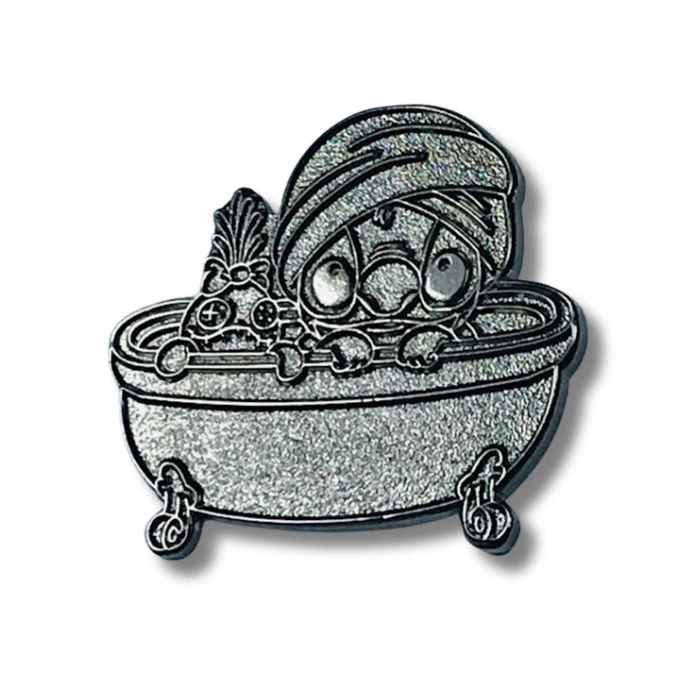 Laissez-vous transporter vers ces scènes touchantes où rires et amour emplissent l'air, où un extraterrestre excentrique dans sa baignoire peut susciter des sourires et de doux souvenirs. Les nuances vibrantes de bleu, les bulles espiègles et la tendresse de la pose s'unissent pour illustrer la complexité et le charme du personnage de Stitch, faisant de cette broche un incontournable pour les fans passionnés qui ressentent la magie de l'ohana au plus profond de leur cœur.