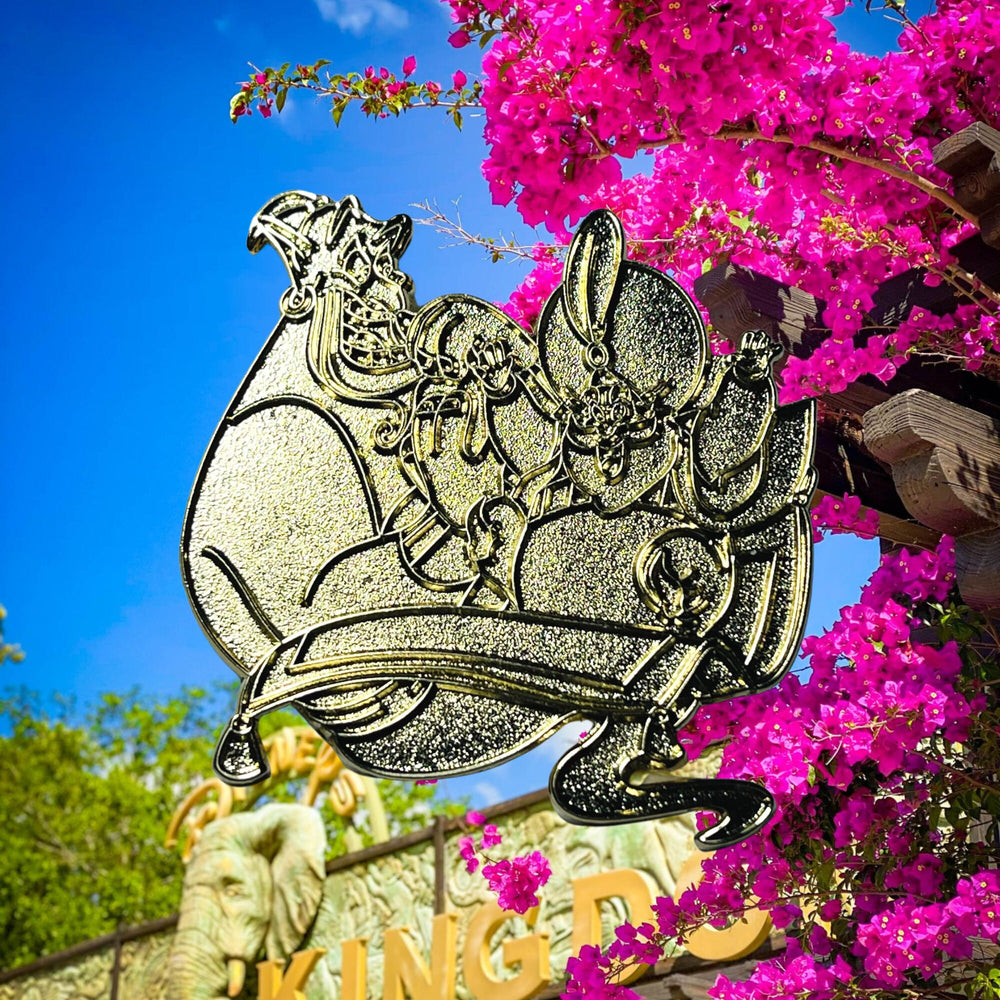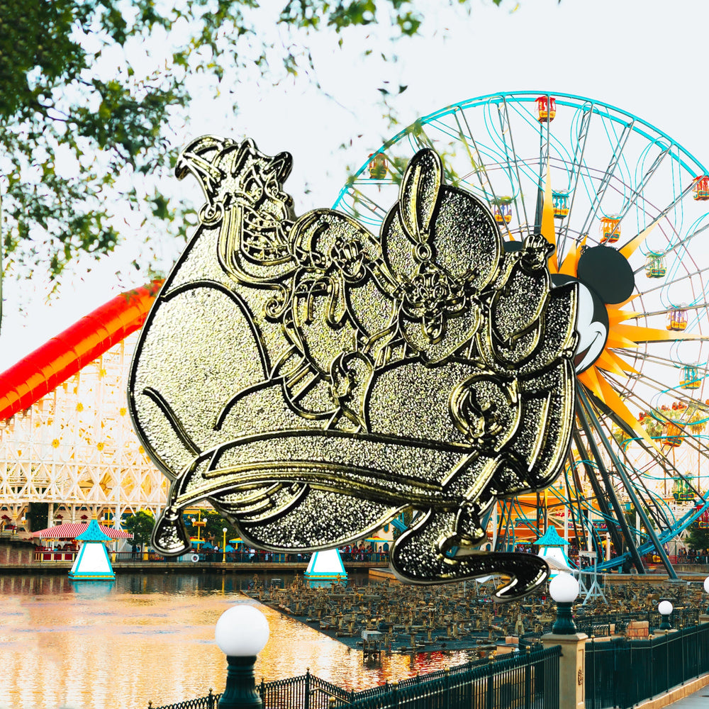 Vivez l'effervescence des rues d'Agrabah, les arômes des épices, l'animation des bazars et l'éclat des jardins du palais baignés d'une lumière dorée. Ce pin's capture la magie sensorielle de la ville, un lieu où chaque ombre recèle un secret et où chaque coucher de soleil promet un nouveau départ. Véritable porte ouverte sur l'émerveillement, il invite à plonger dans un univers où les rêves prennent vie.