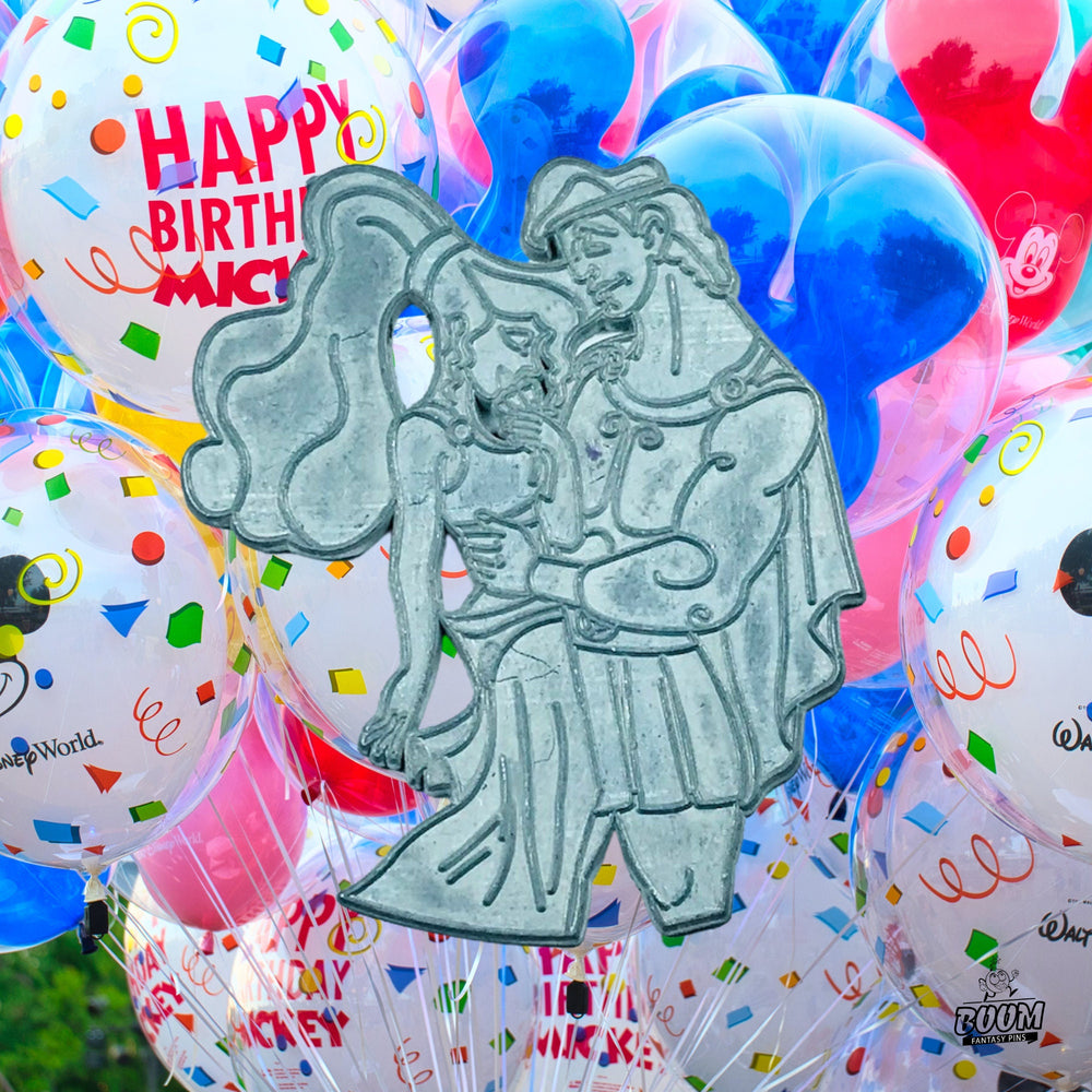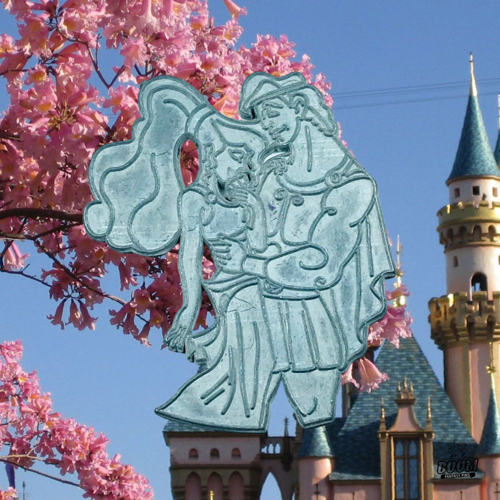 Cette broche – Hercule et Mégara du film Hercule – Disney Fantasy | Cadeau de collection sur le thème de la Grèce antique mythique pour les fans des héros et héroïnes Disney – capture toute la grandeur et la passion de ce récit légendaire. Conçue pour évoquer l'esprit cinématographique de l'une des épopées les plus appréciées de Disney, elle vous invite à emporter avec vous un fragment de cette aventure intemporelle. Leurs silhouettes entrelacées se dressent, à la fois audacieuses et gracieuses, au carrefour du destin et du désir, illuminées par les riches nuances de pourpre, d'or et de tons terreux qui évoquent la détermination ardente du héros et le charme énigmatique de l'héroïne.